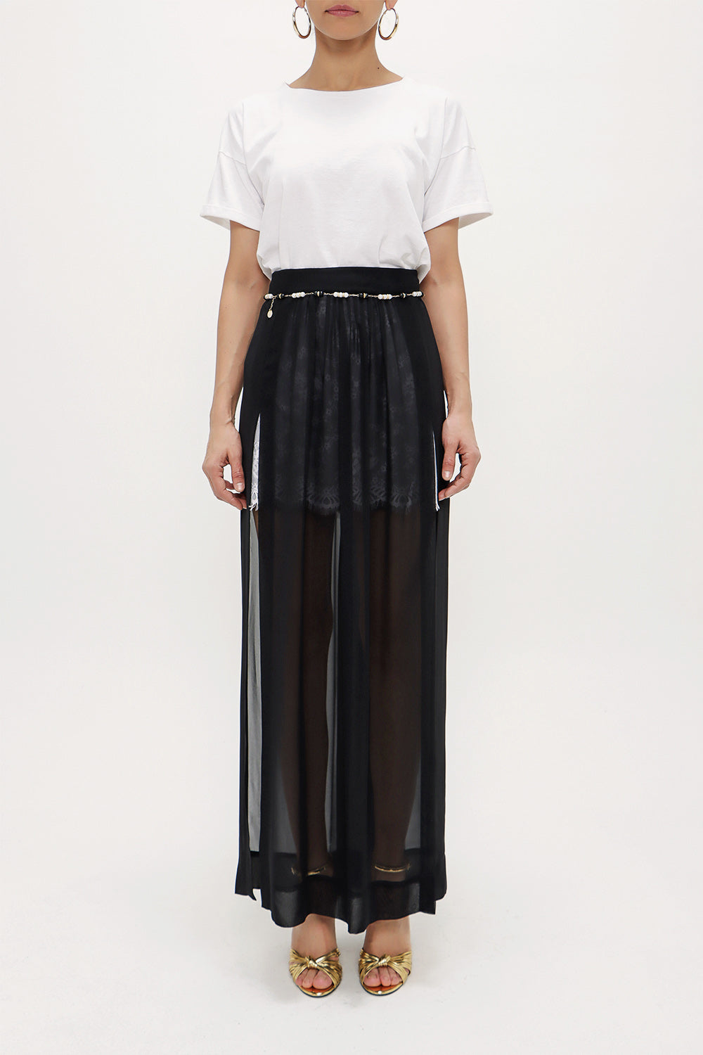 Siyah aksesuarlıı şifon etek 80495