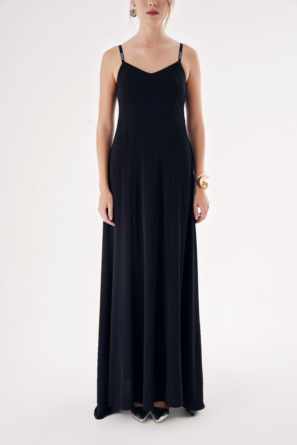 Siyah Askılı taş detaylı rahat godeli elbise 94457
