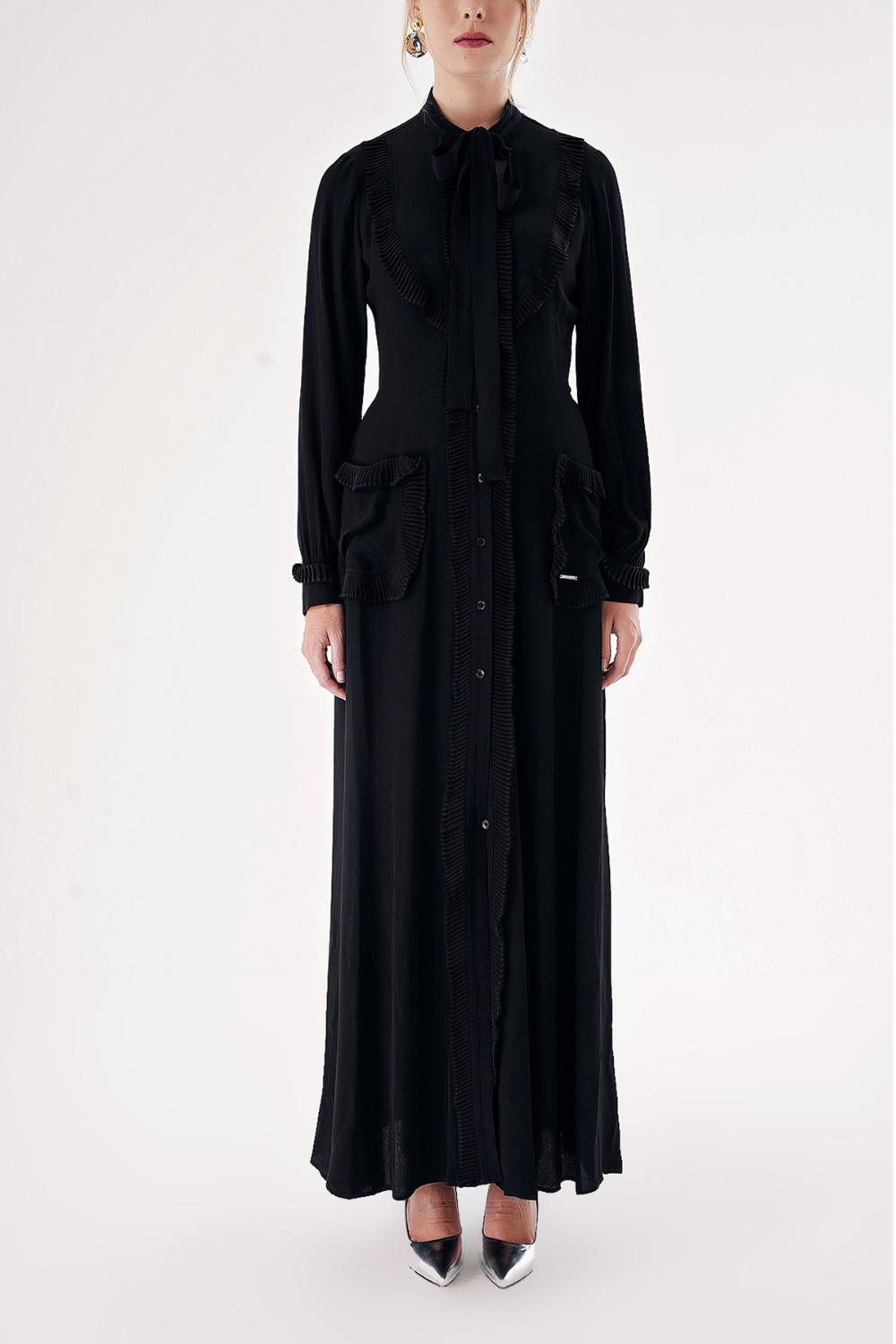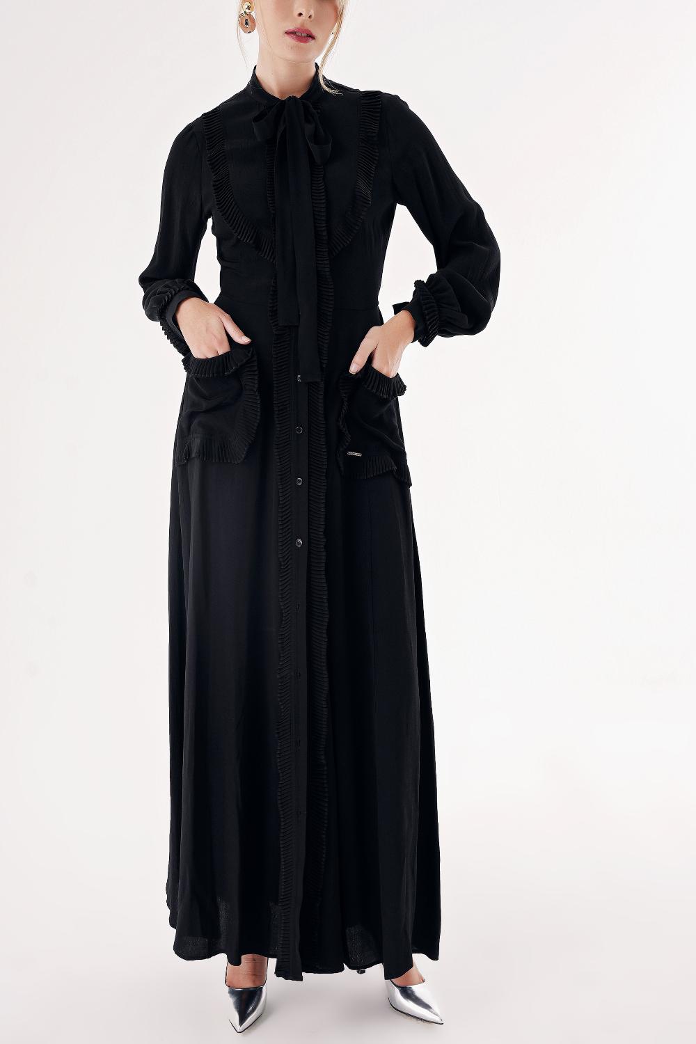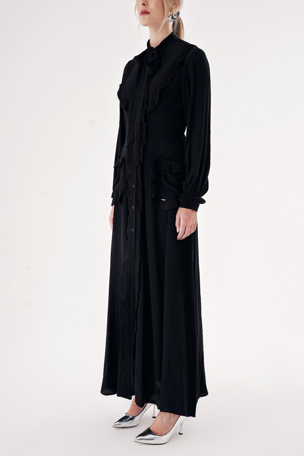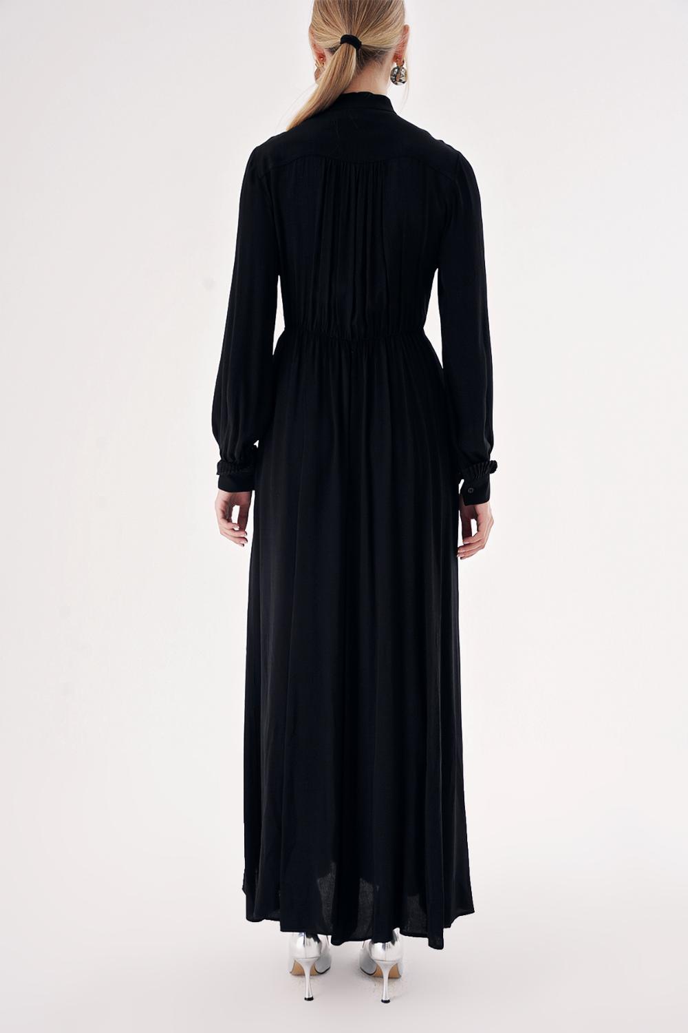 Siyah Balon kol yakası bağcıklı elbise 94525