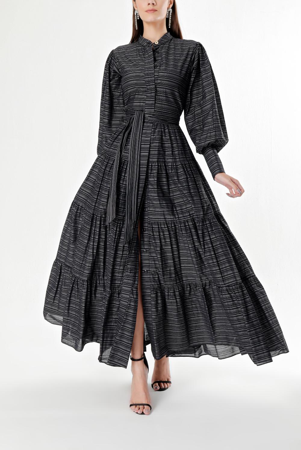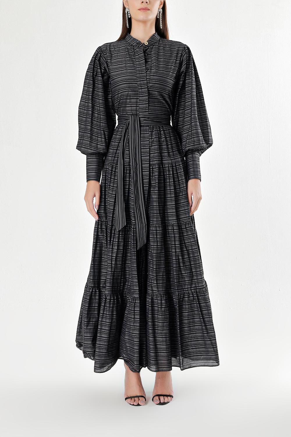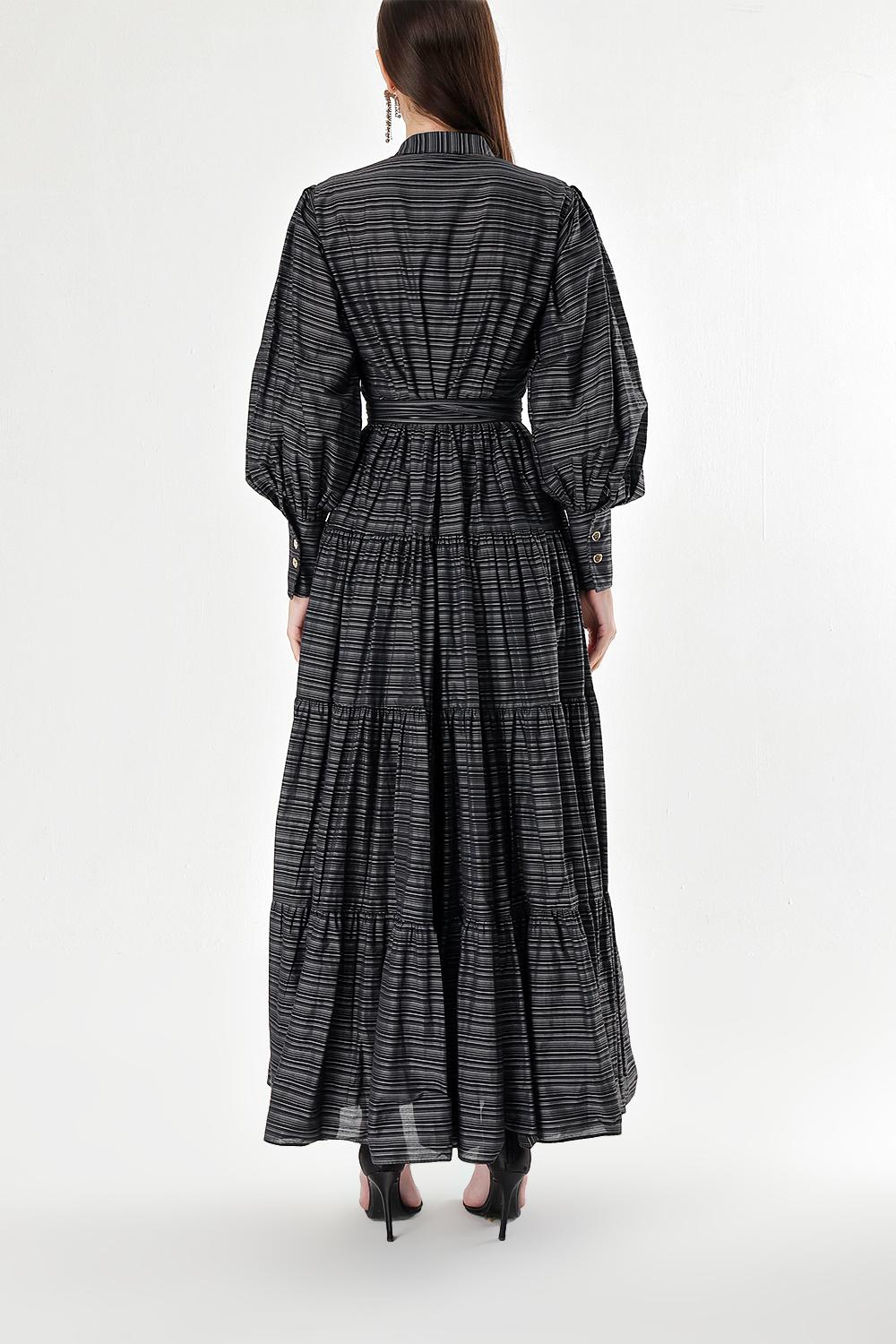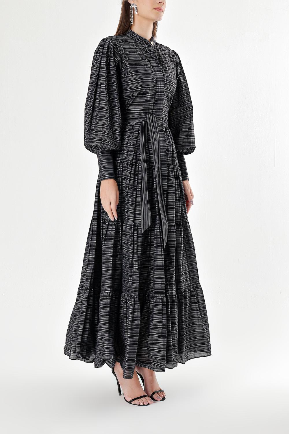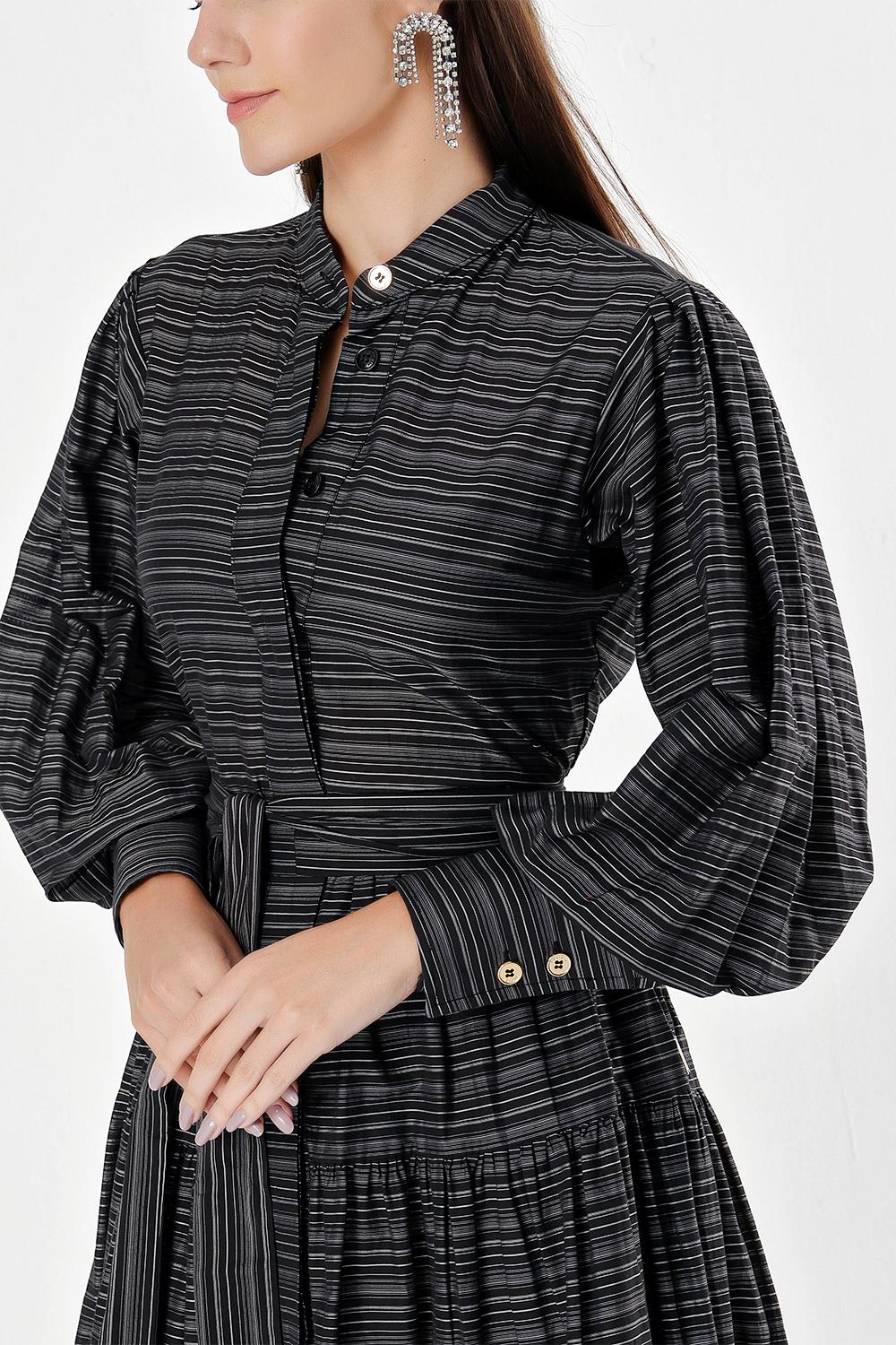 Siyah Balon kollu büzgülü gömlek elbise 94301