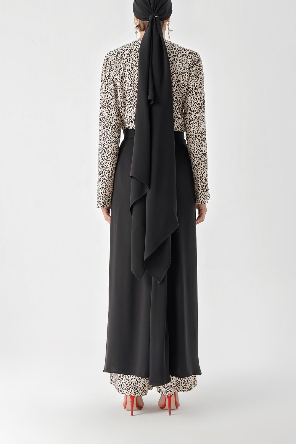 Siyah Bej Beli lastikli pantolonlu etekli şallı dörtlü takım 12327