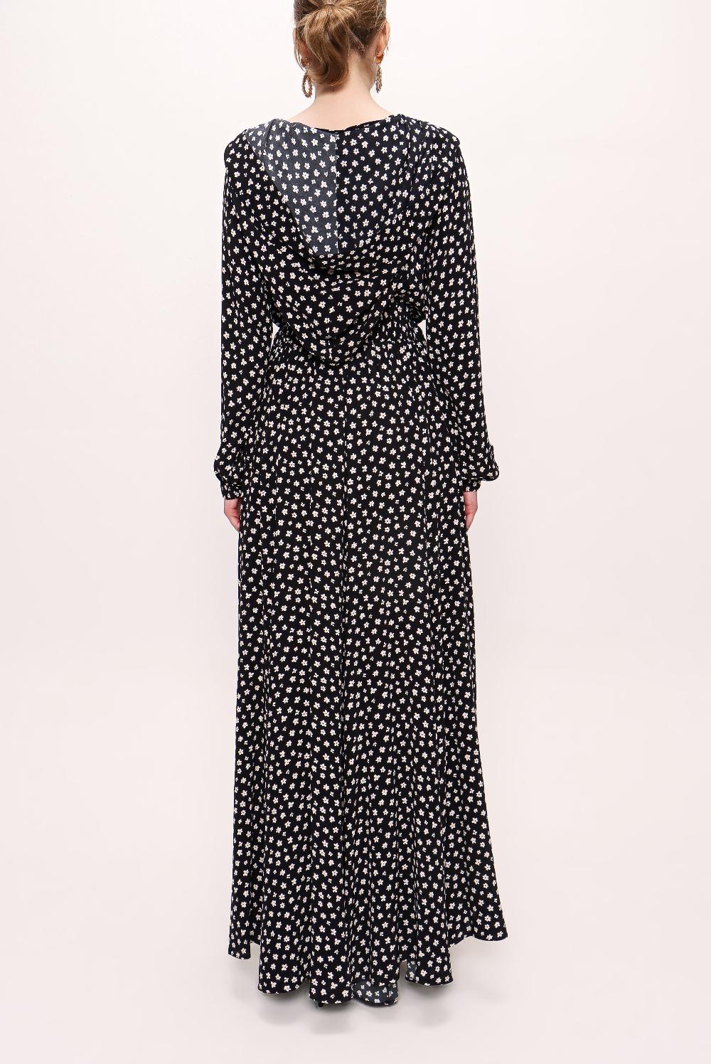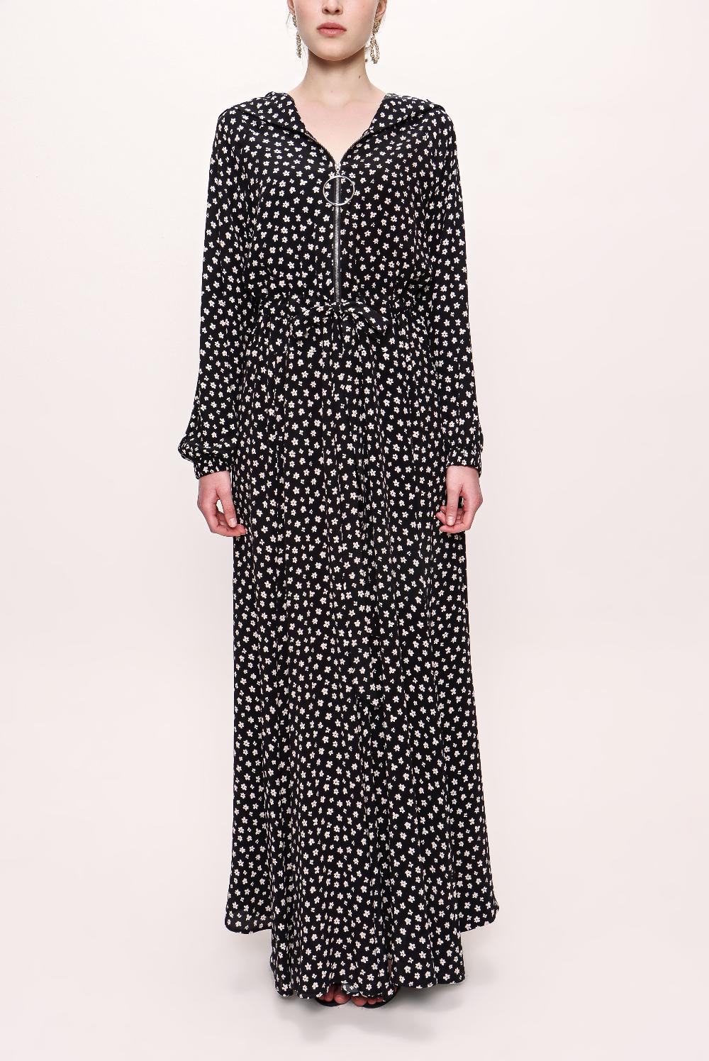 Siyah Bej Fermuarlı kapüşonlu uzun elbise 93741