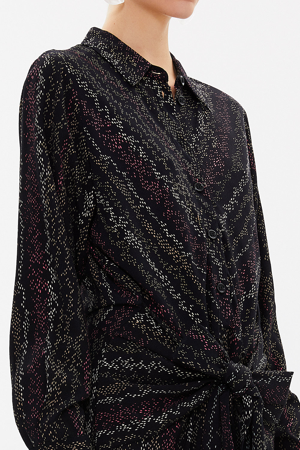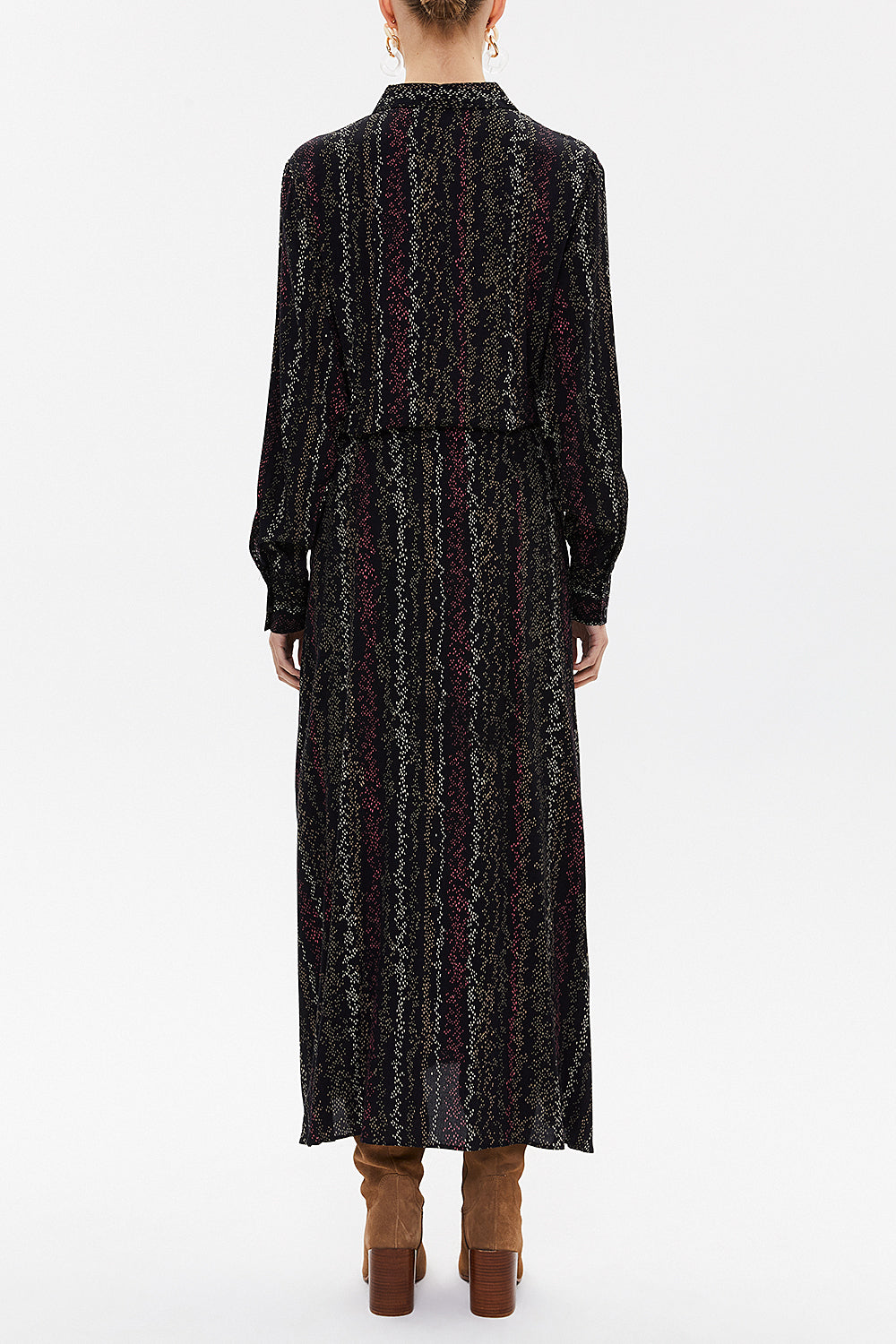 Siyah Bej Önden bağlamalı midi elbise 92971