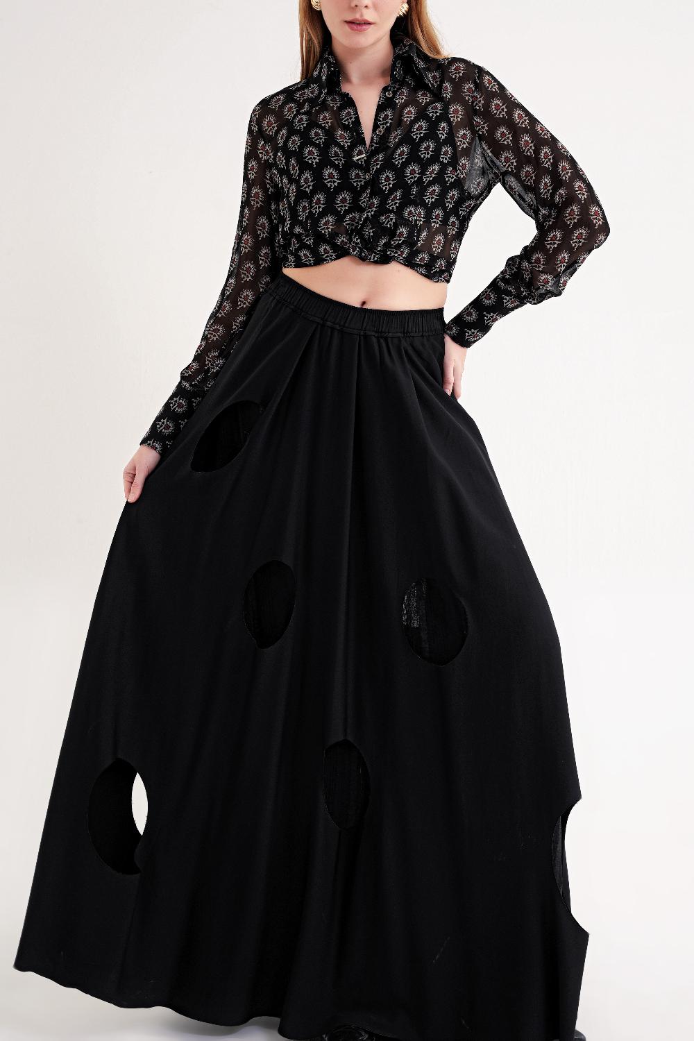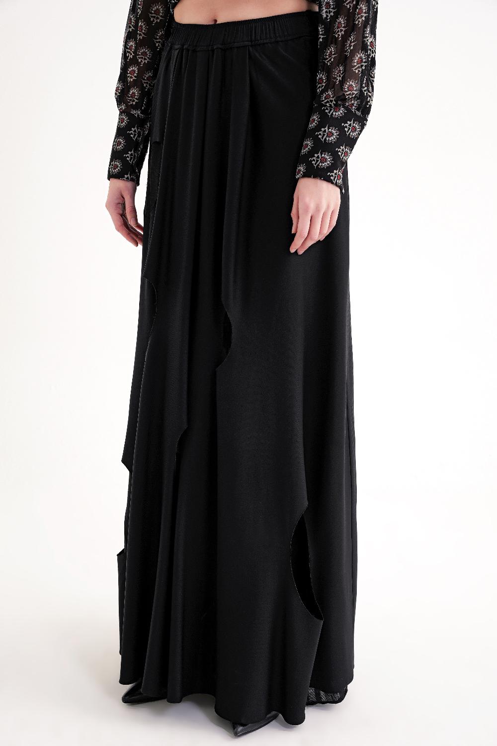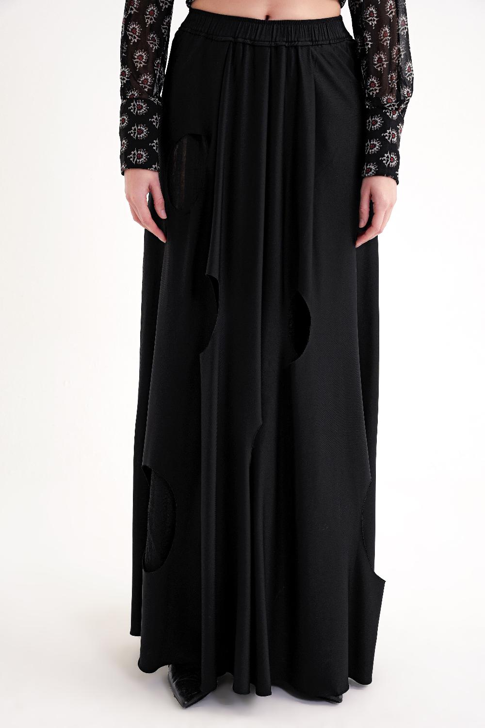 Siyah Beli lastikli astarı piliseli daire kesimli etek 81268