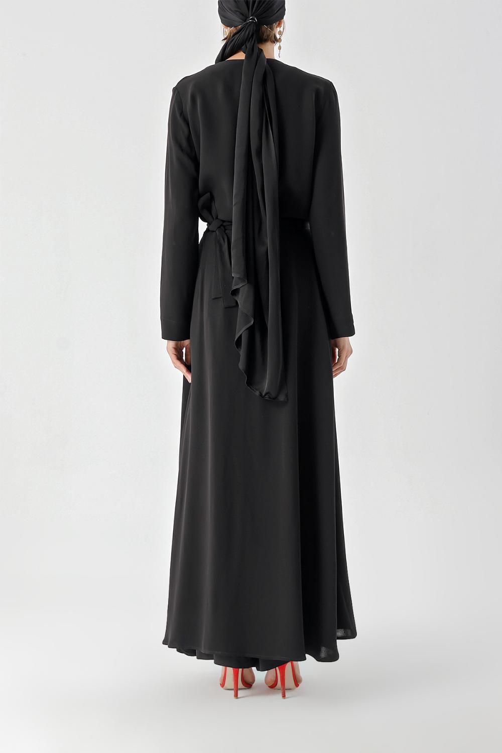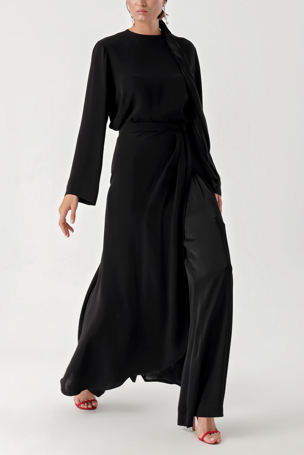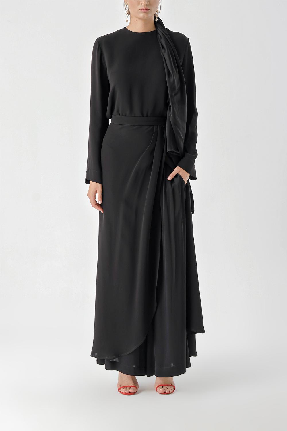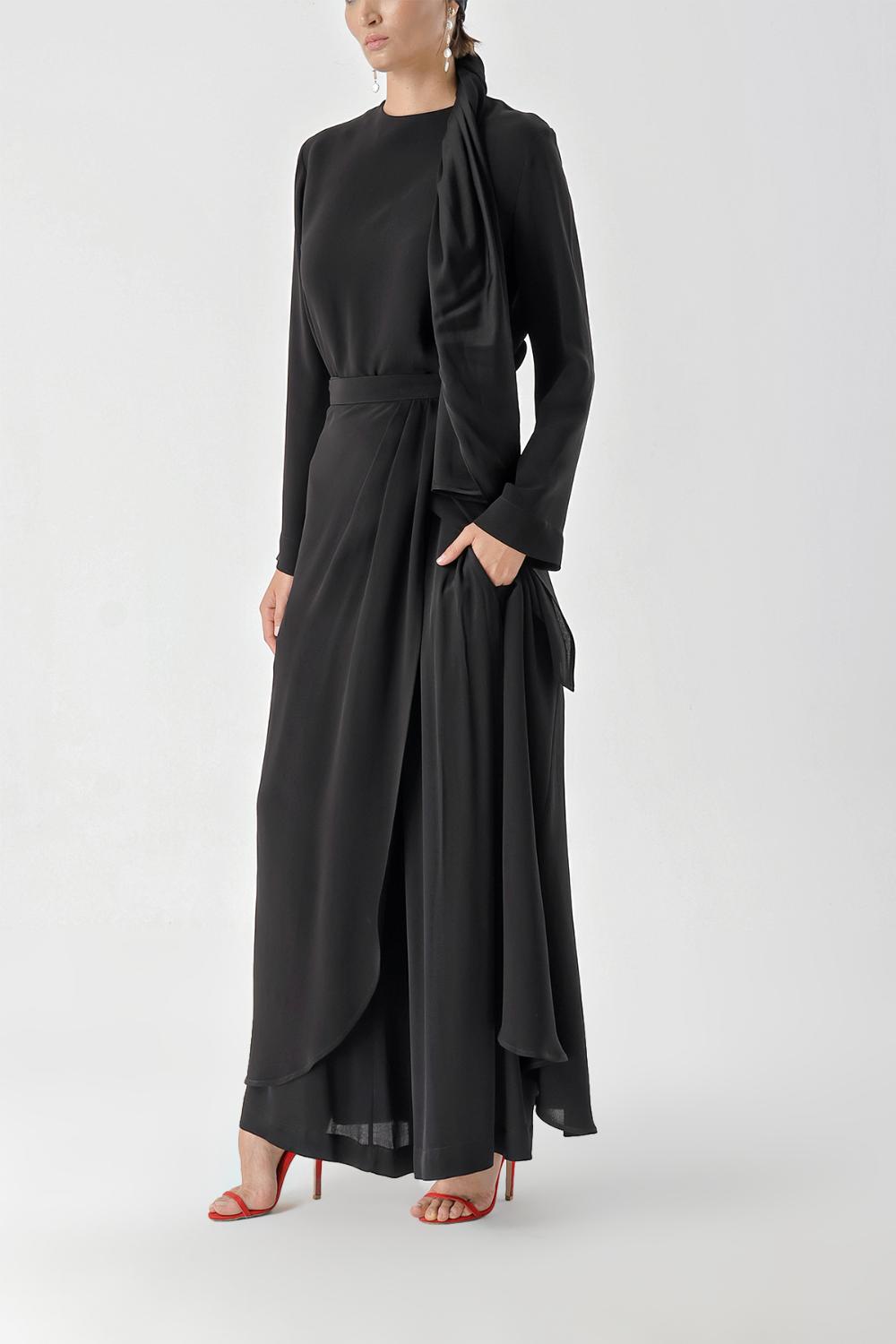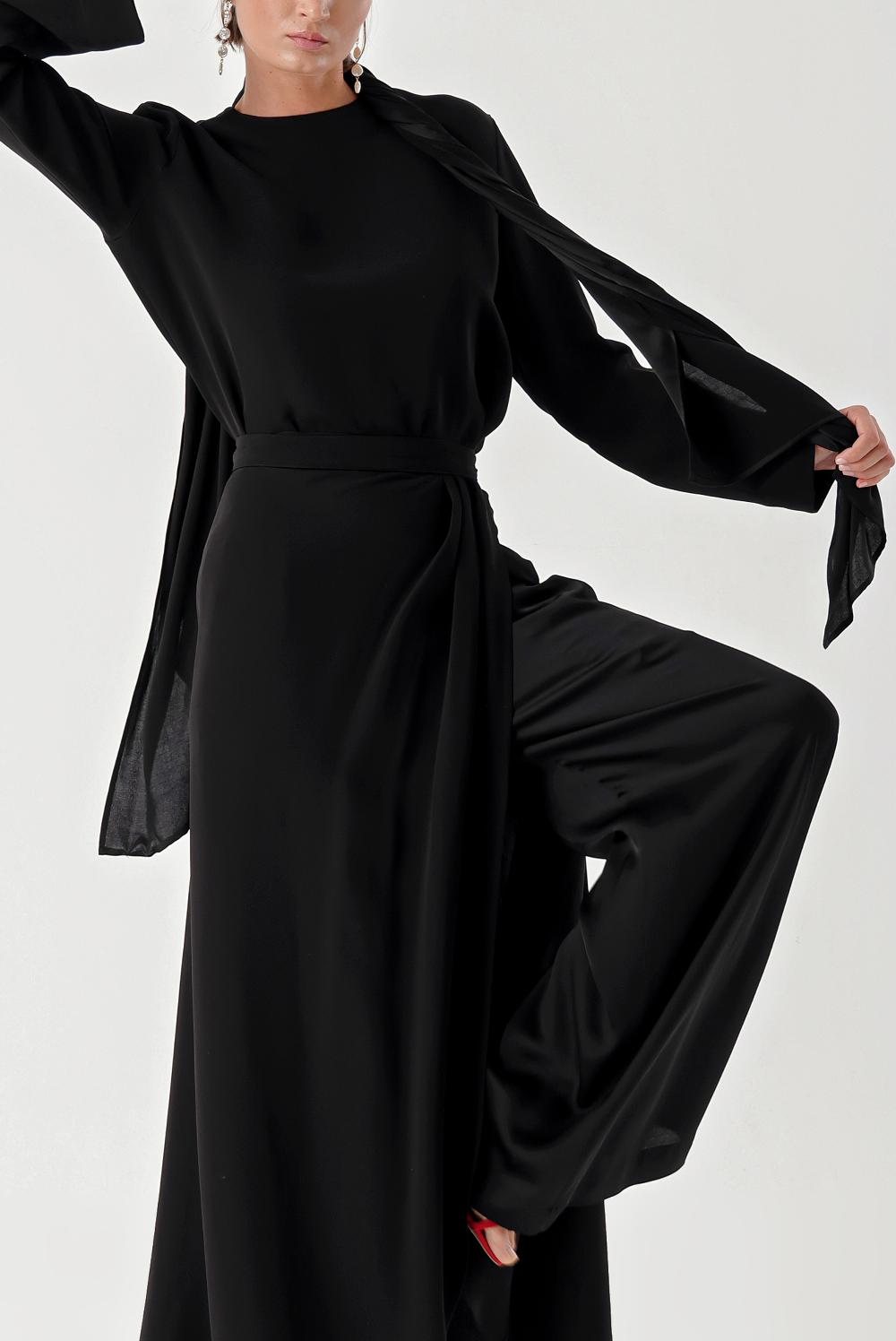 Siyah Beli lastikli pantolonlu etekli şallı dörtlü takım 12324