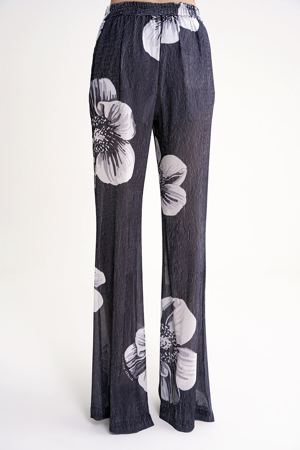 Siyah Beli lastikli piliseli bol paça pantolon 41649