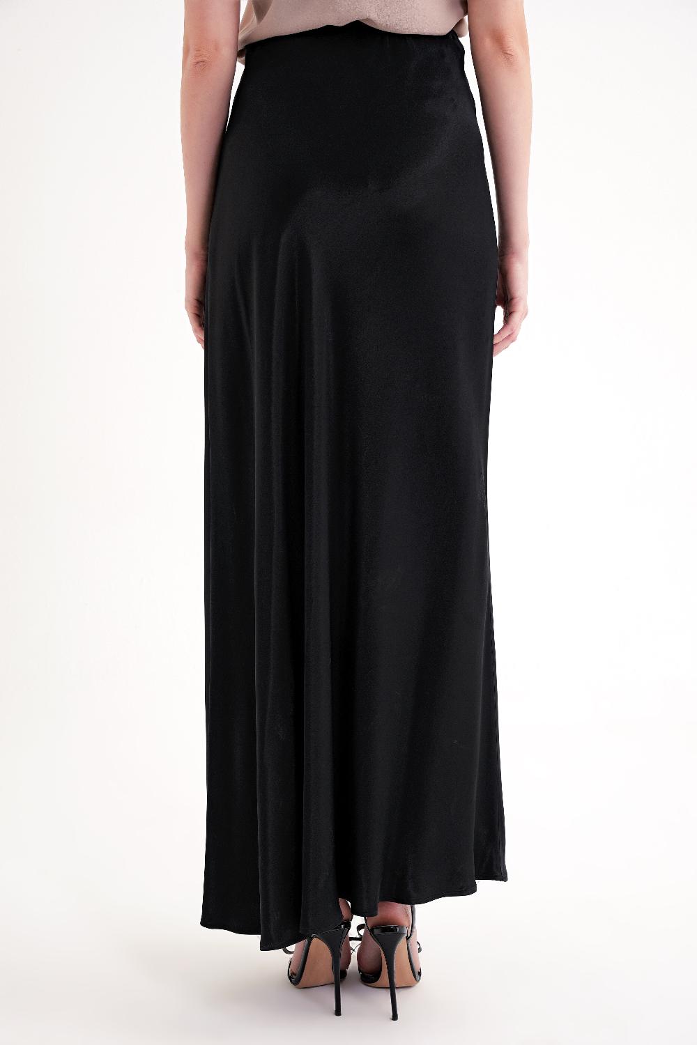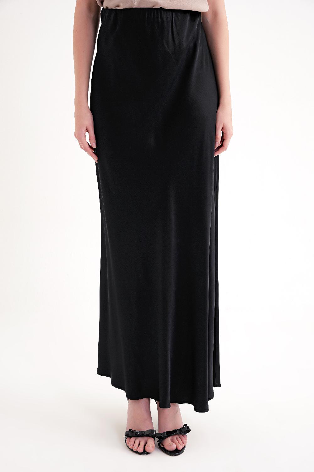 Siyah Beli lastikli uzun saten etek 81331