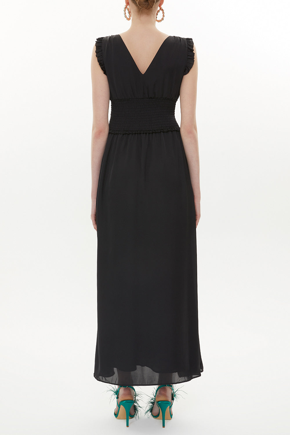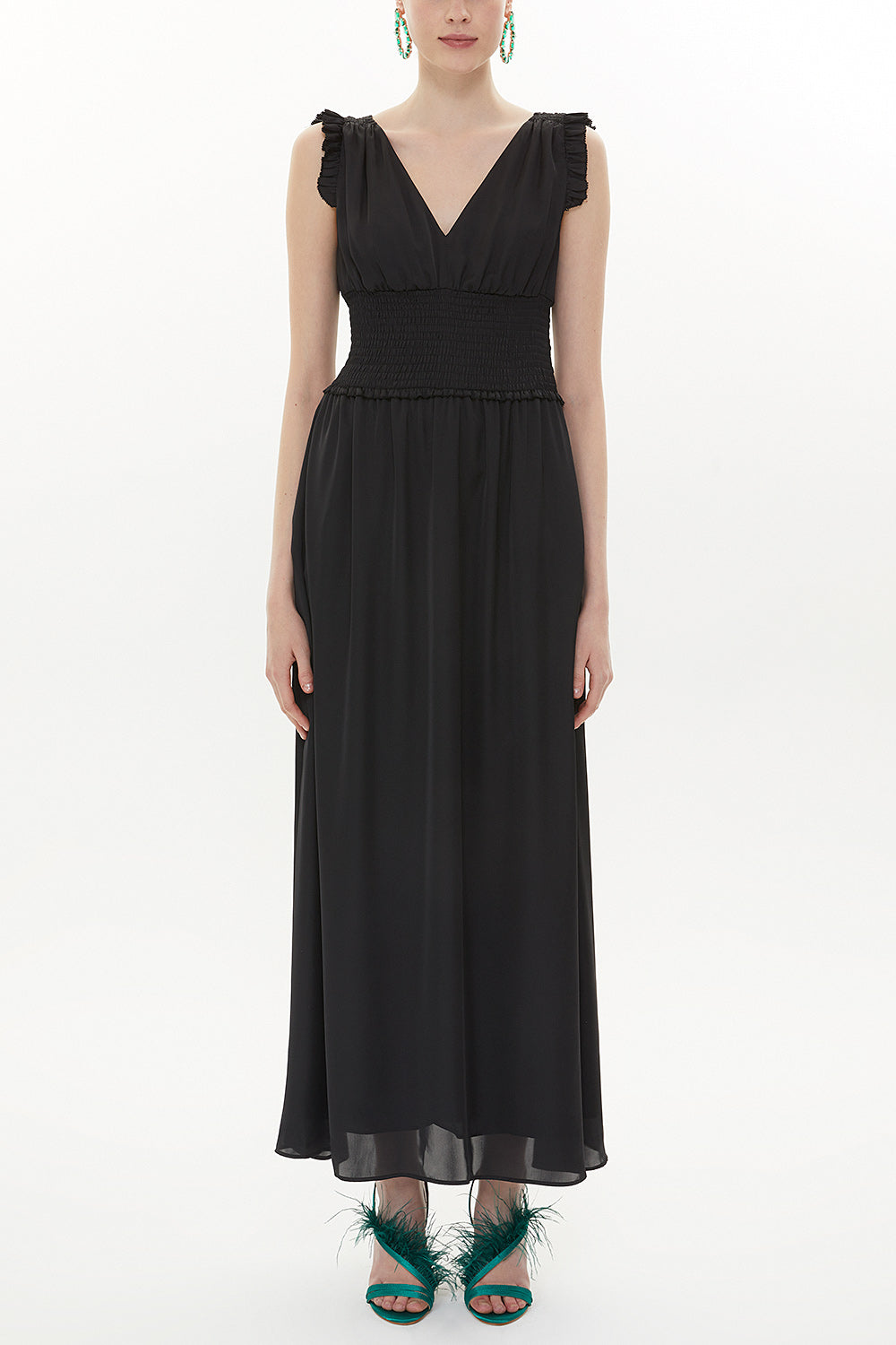 Siyah Beli lastikli V yaka kolsuz uzun elbise 93348