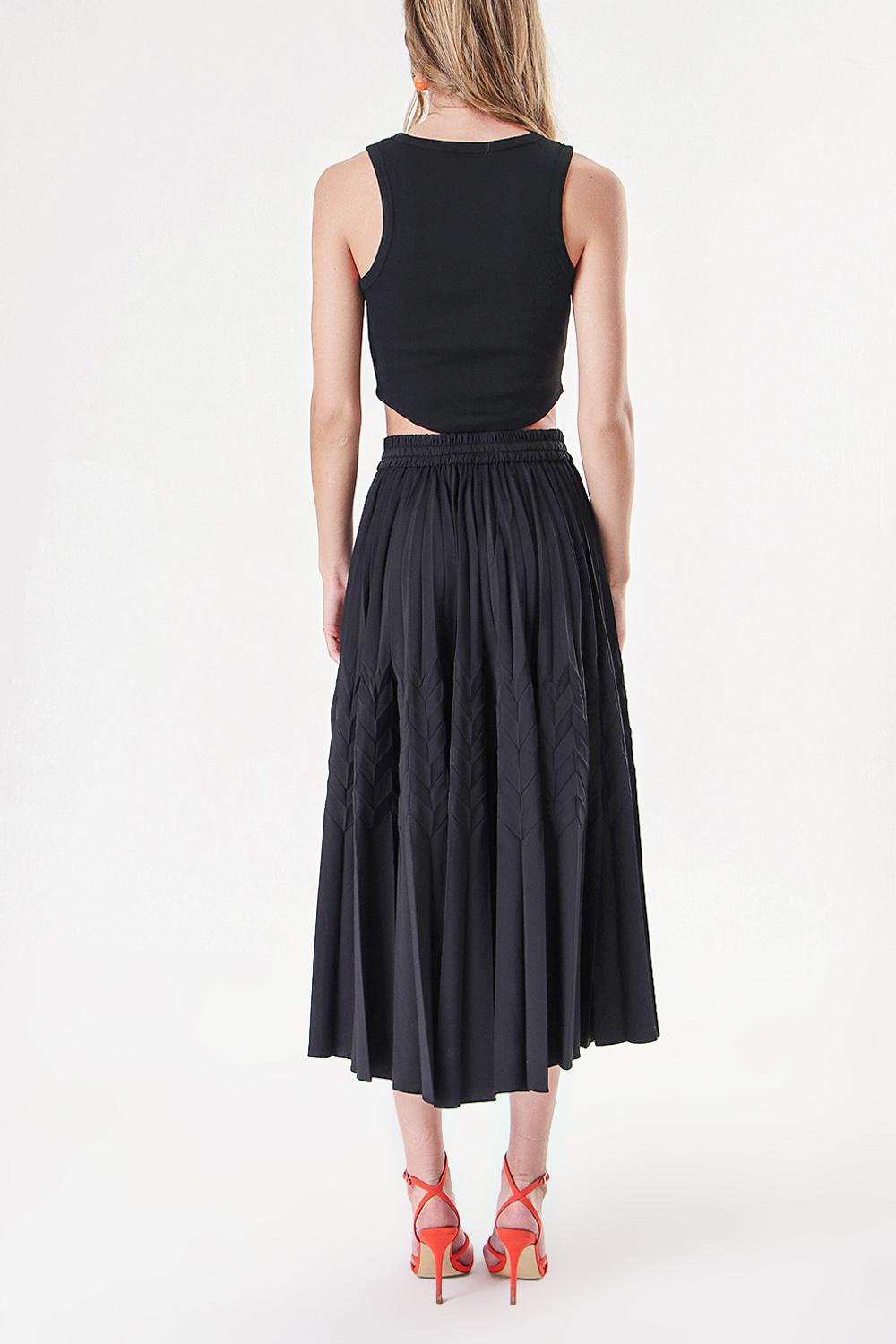 Siyah Beli lastikli ve kordonlu piliseli etek 81227