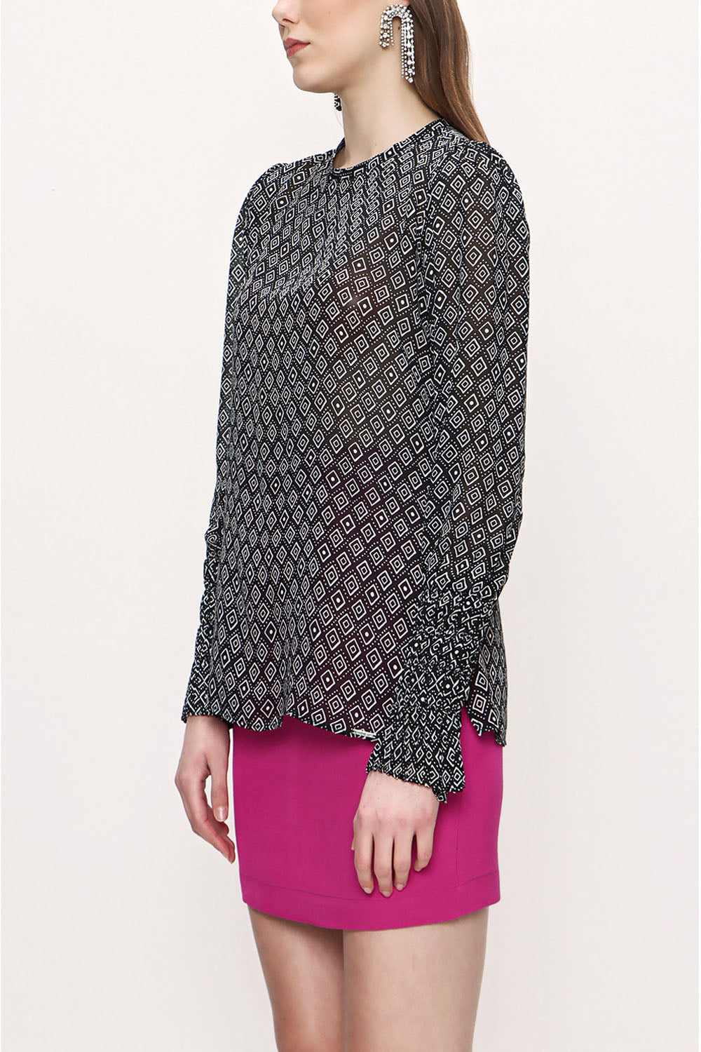 Siyah Beyaz Bilekleri lastikli bluz 19907