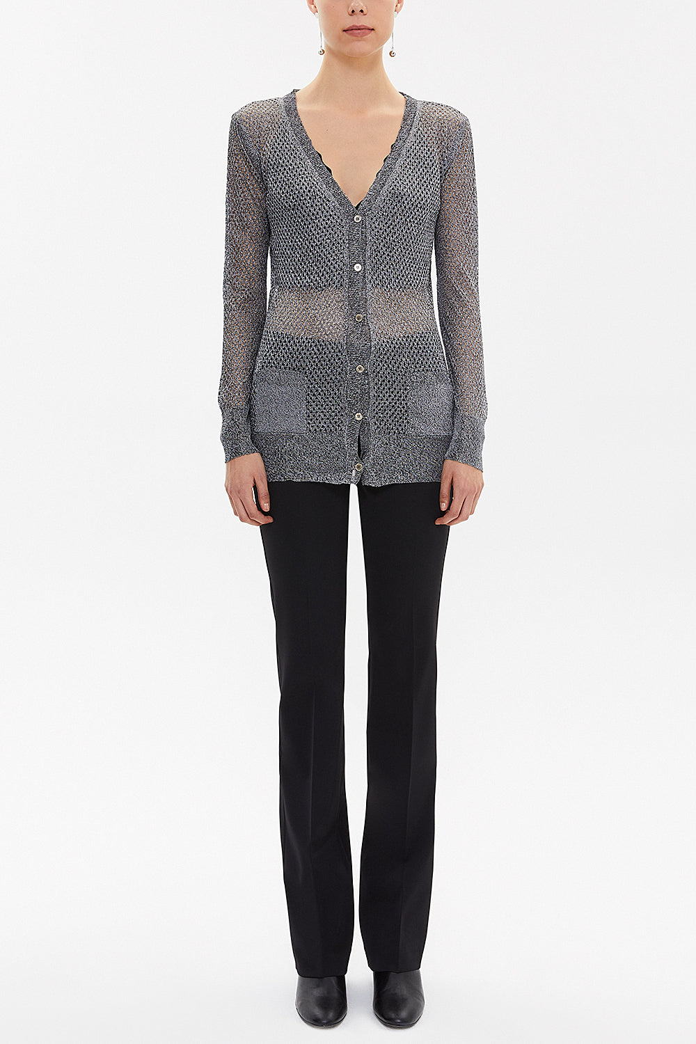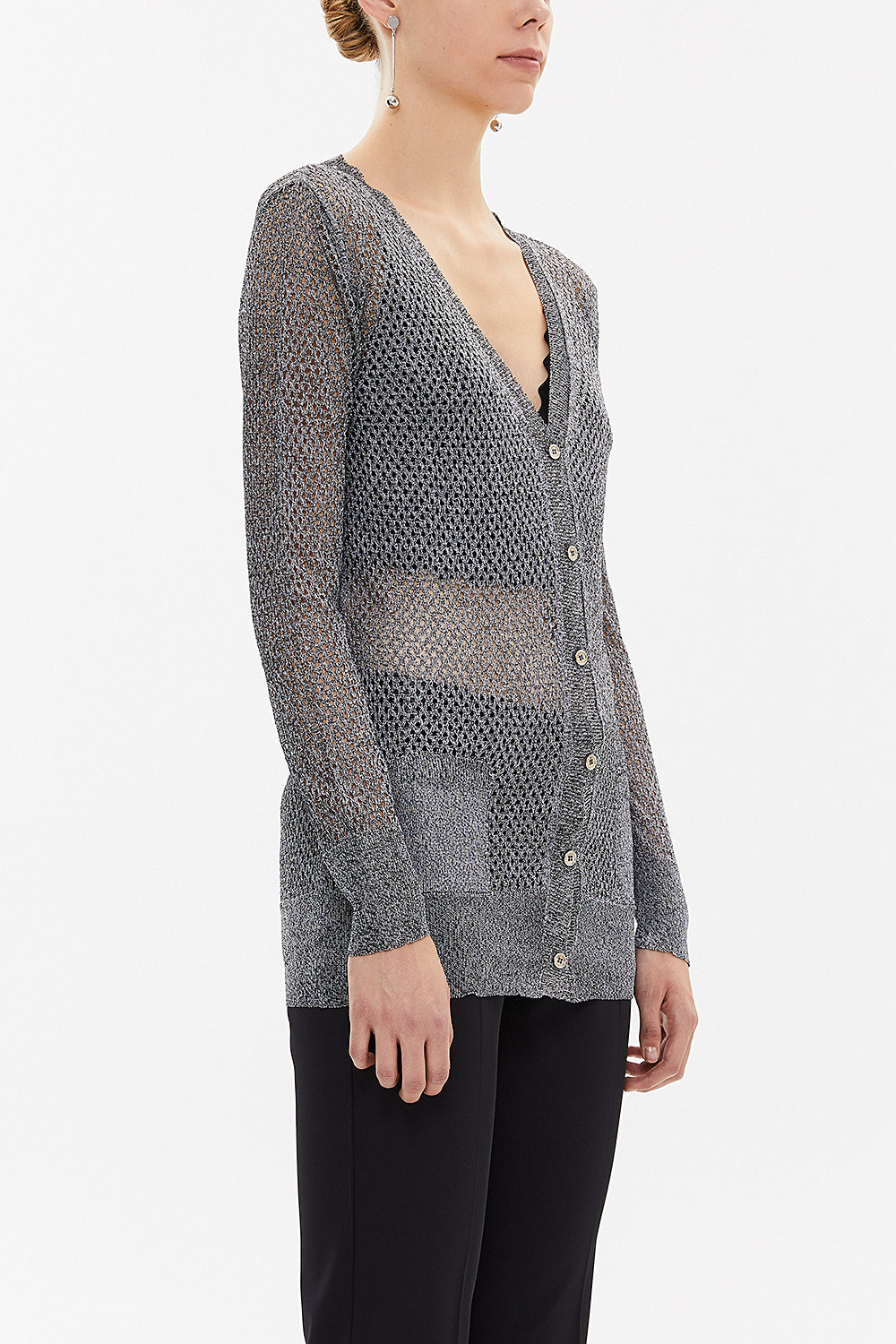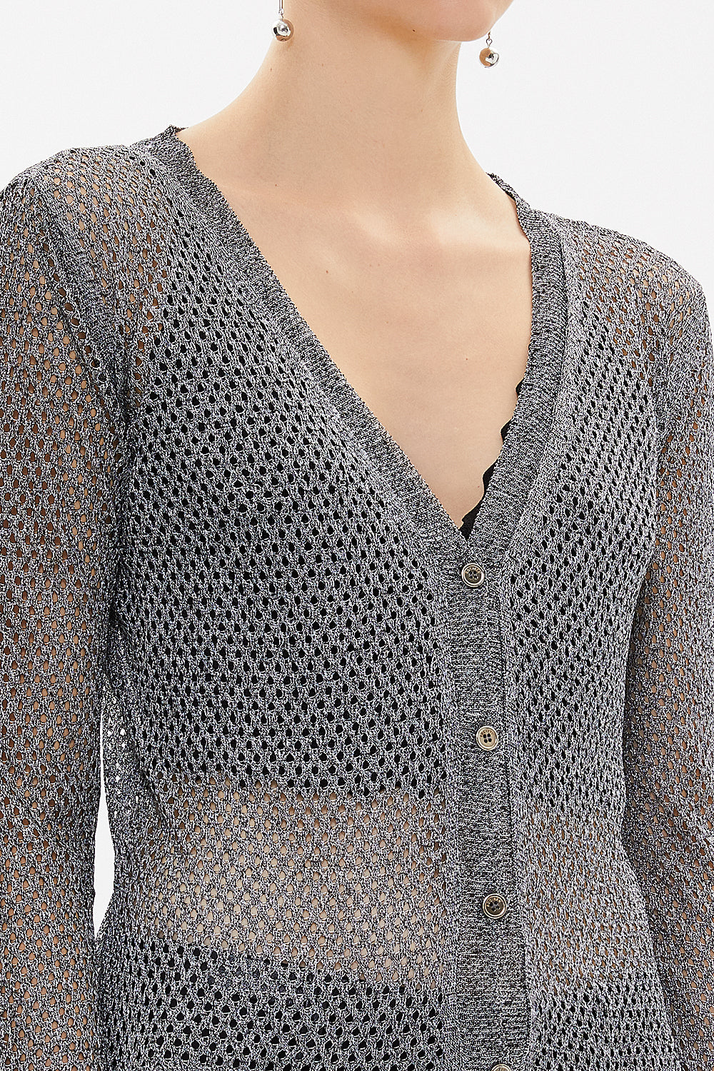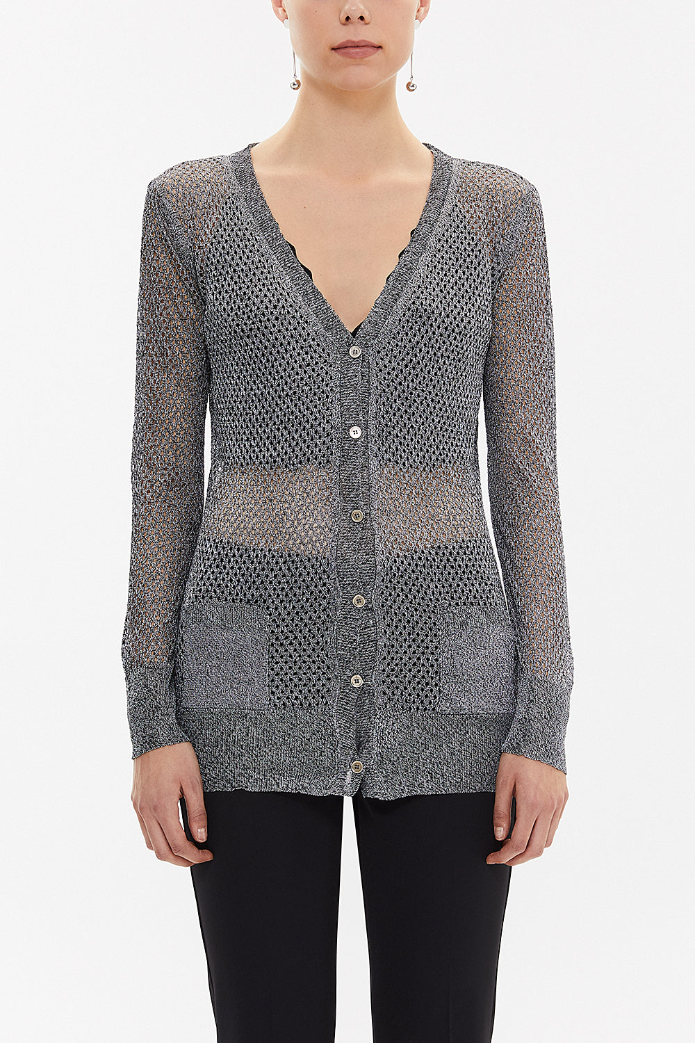 Siyah Beyaz Delikli örgü triko hırka 28645