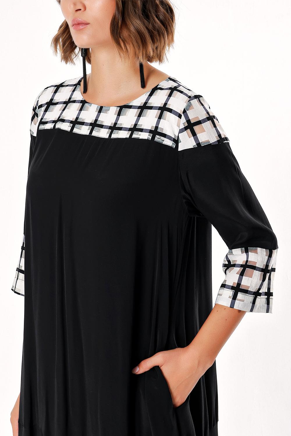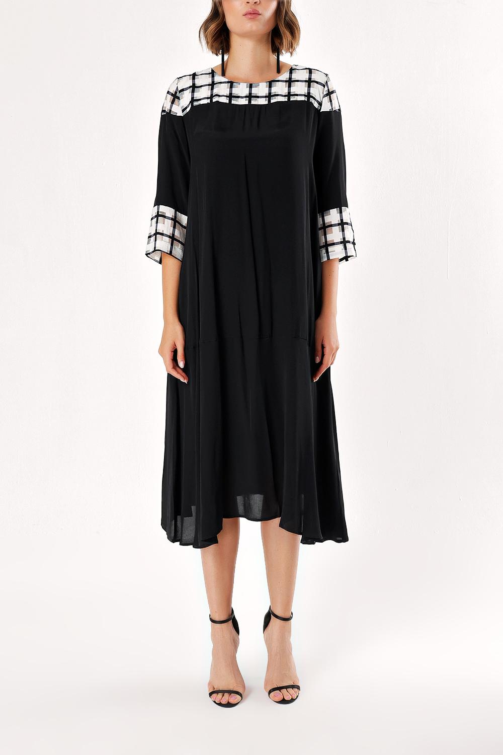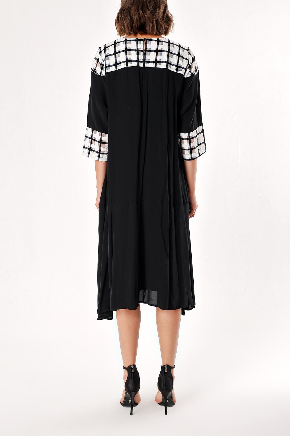 Siyah Beyaz Desenli kumaş kombinli elbise 93950