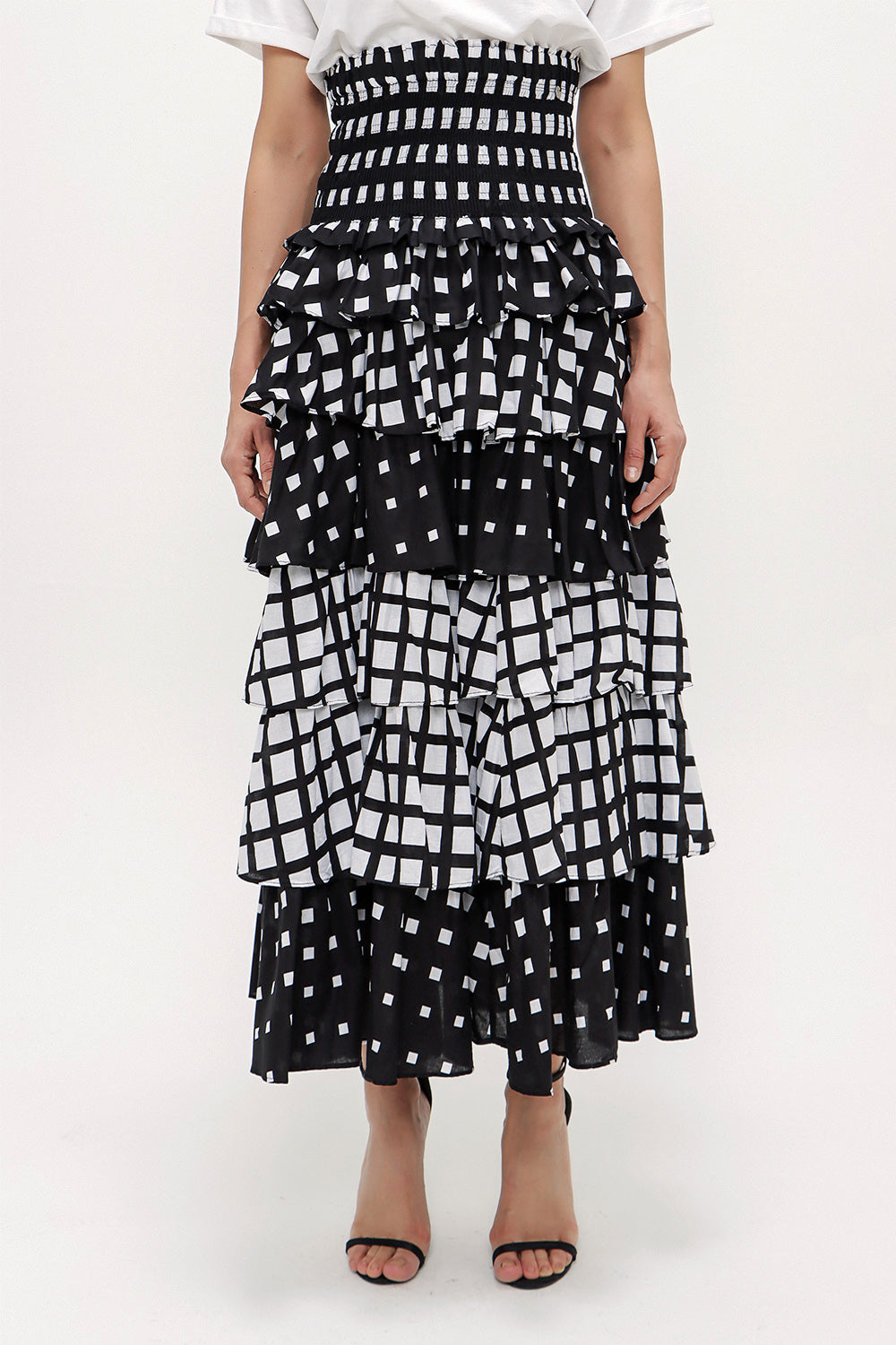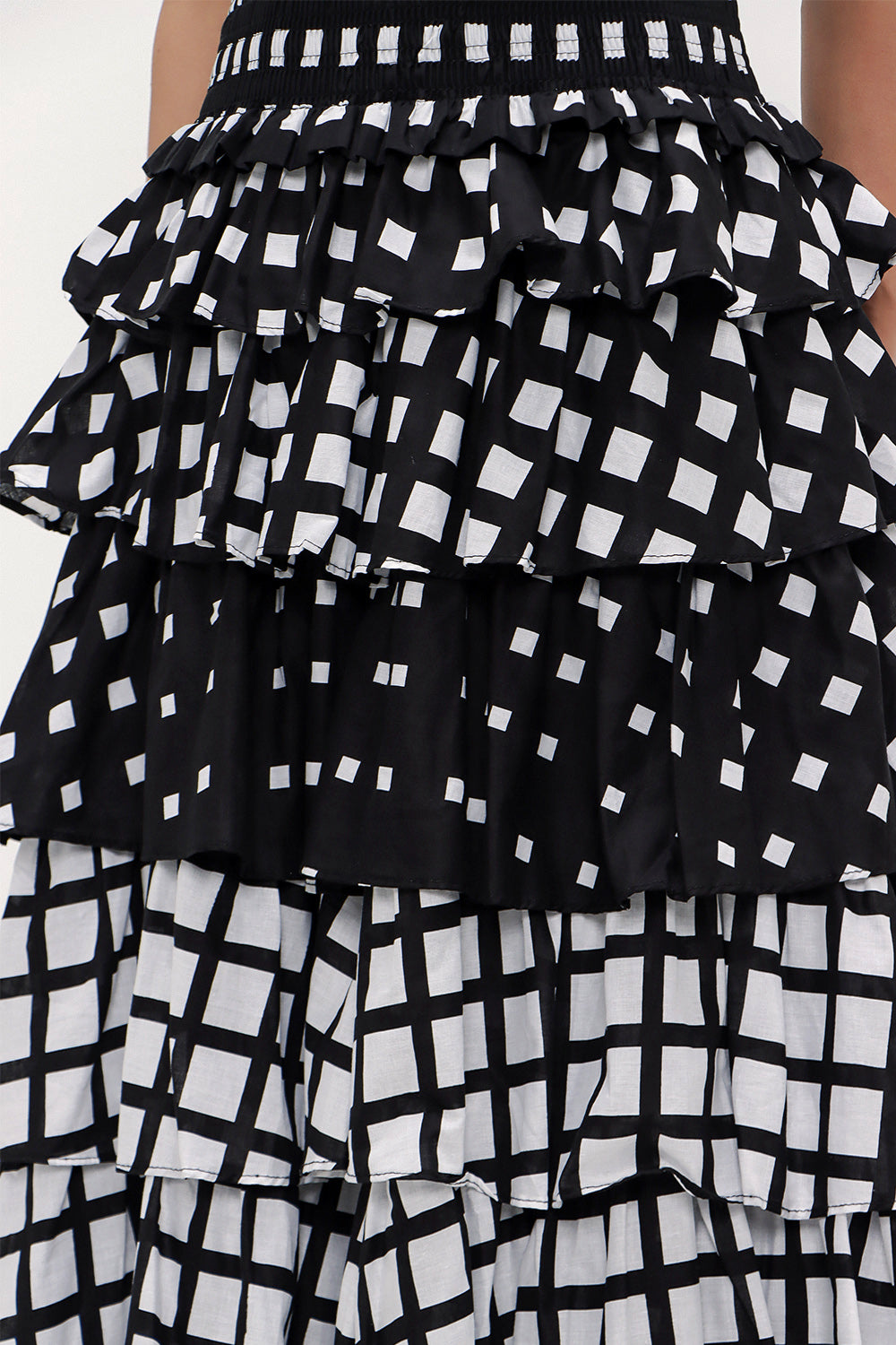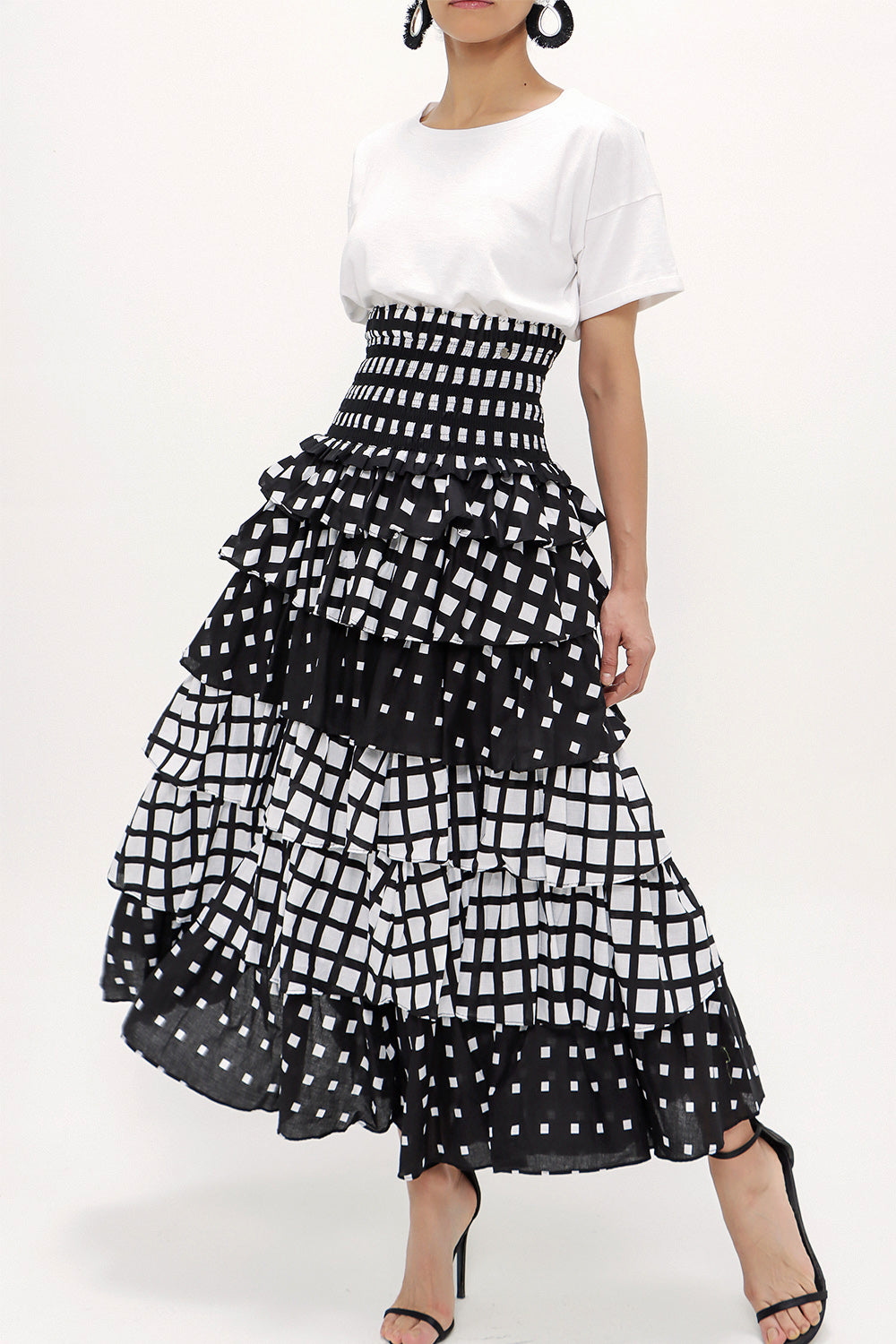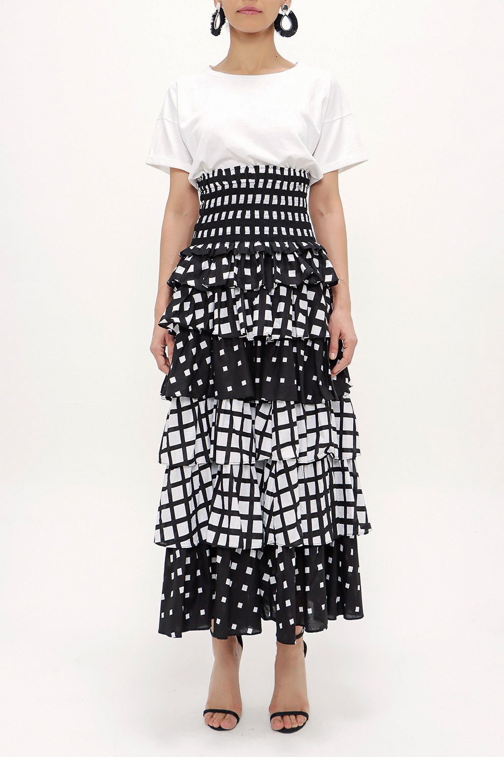 Siyah Beyaz Fırfırlı uzun etek 81157