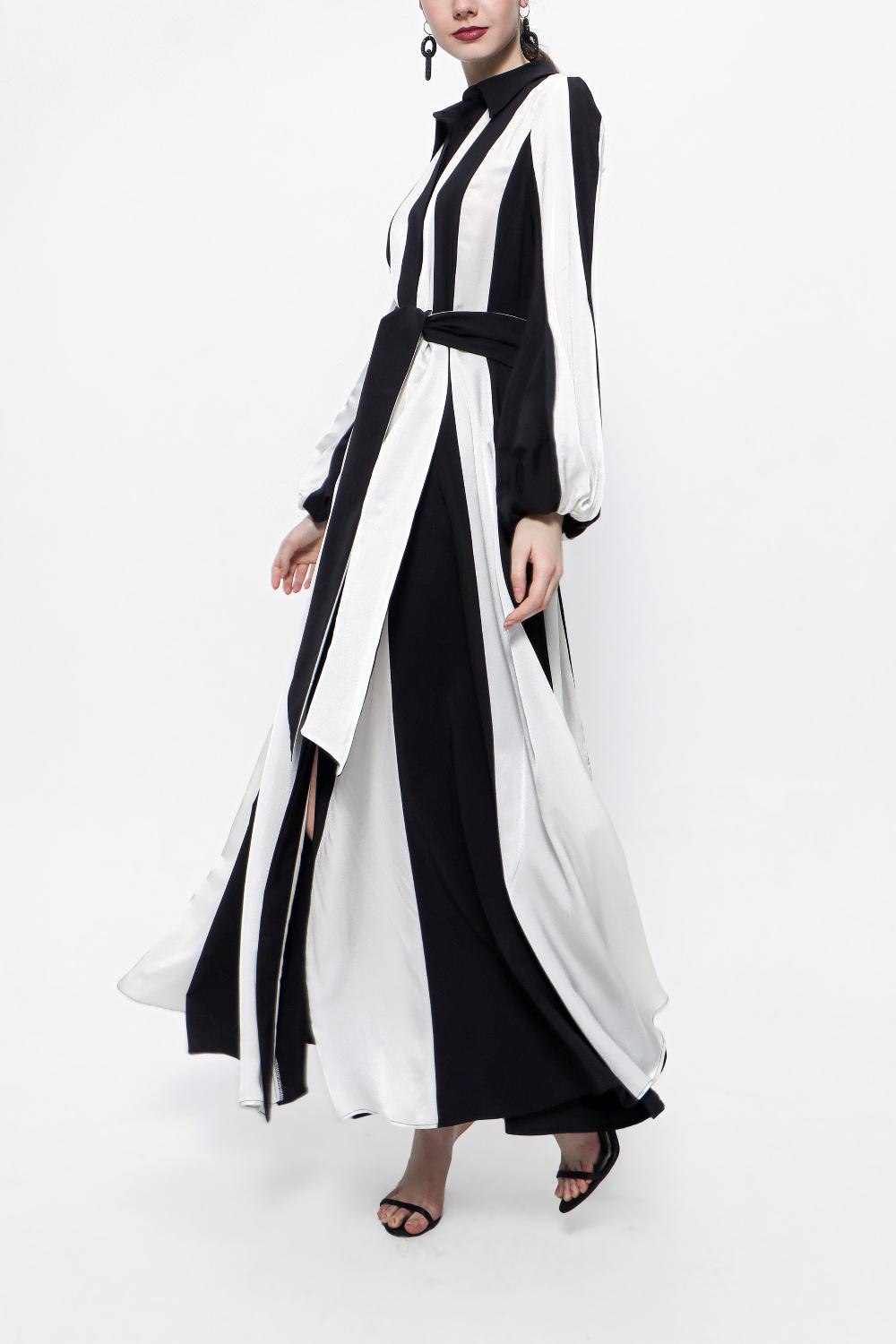 Siyah Beyaz Kontrast kumaş kombinli uzun gömlek elbise 94169
