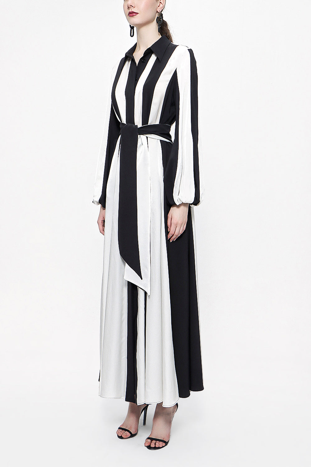Siyah Beyaz Kontrast kumaş kombinli uzun gömlek elbise 94169