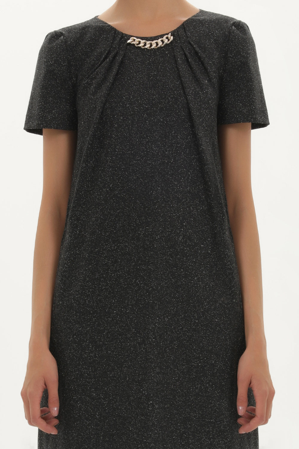 Siyah Beyaz Yakası zincirli yün mini elbise 91715