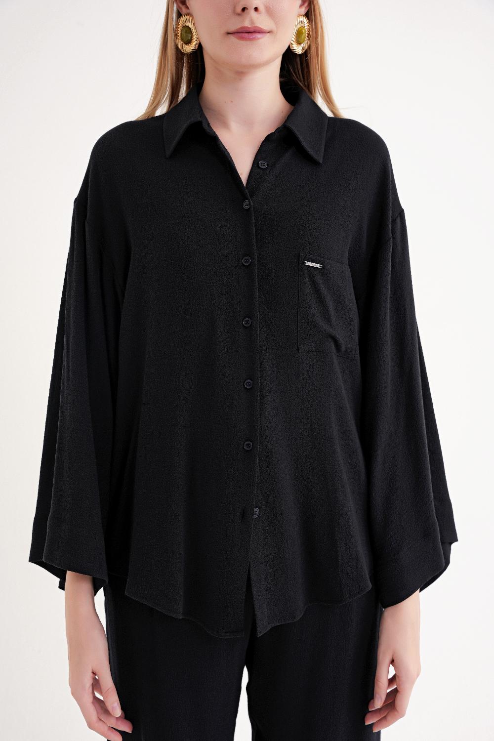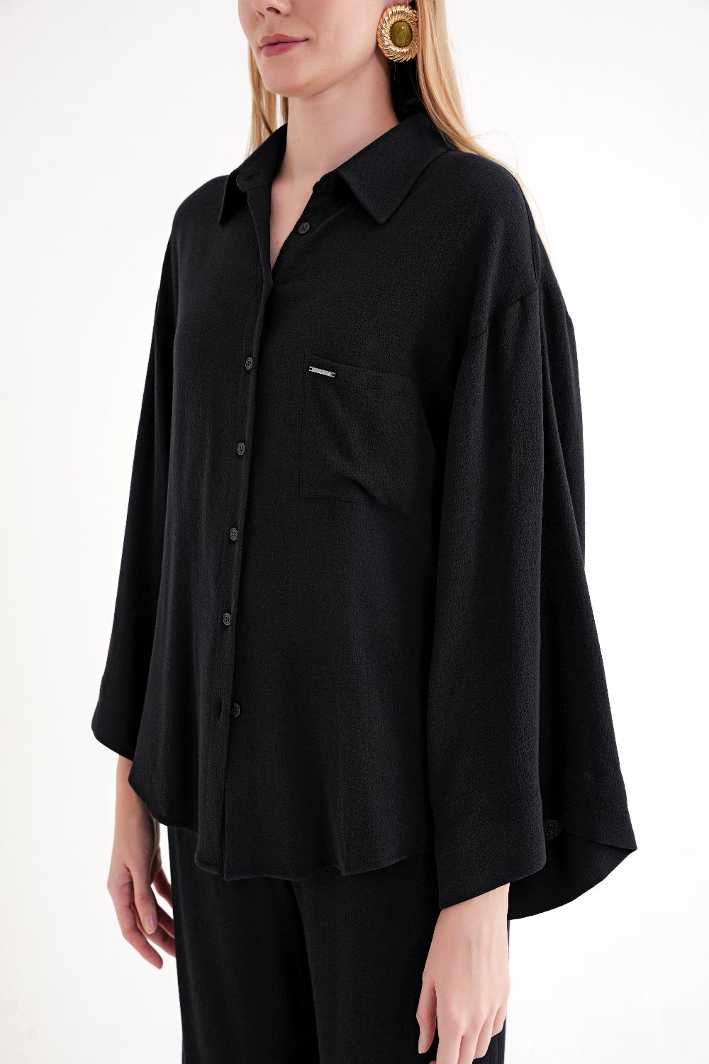 Siyah Bol kesim cepli gömlek 10858