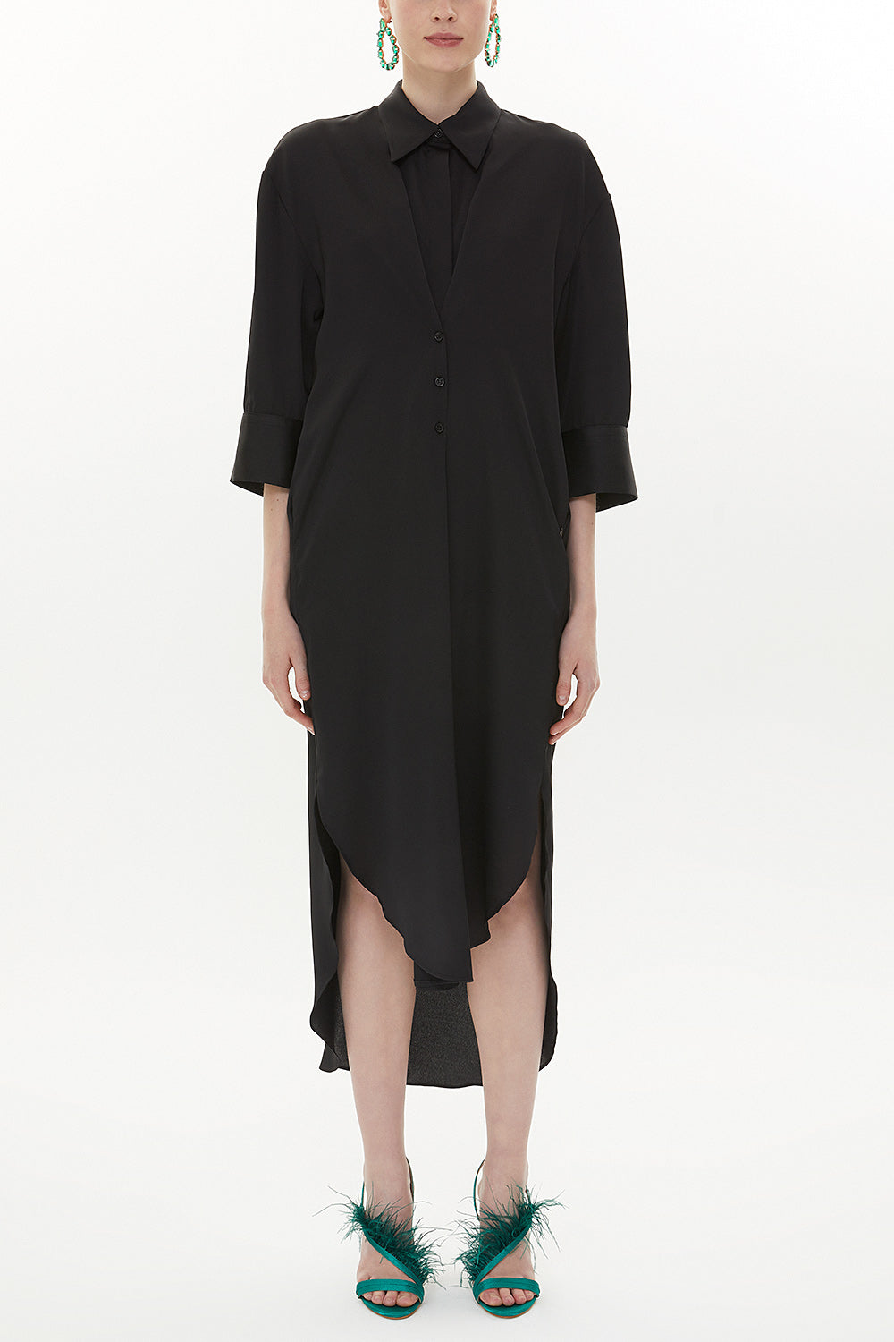 Siyah Bol kesim düğmeli midi elbise 93349