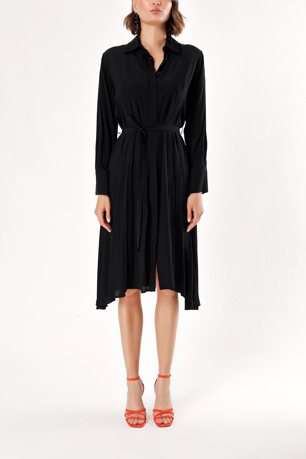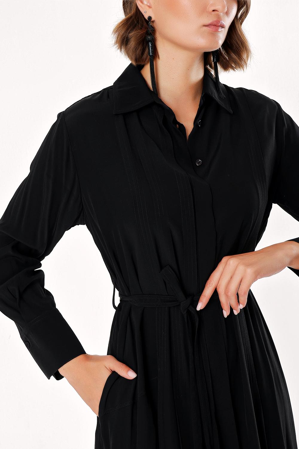 Siyah Bol kesim pili detaylı gömlek elbise 93828