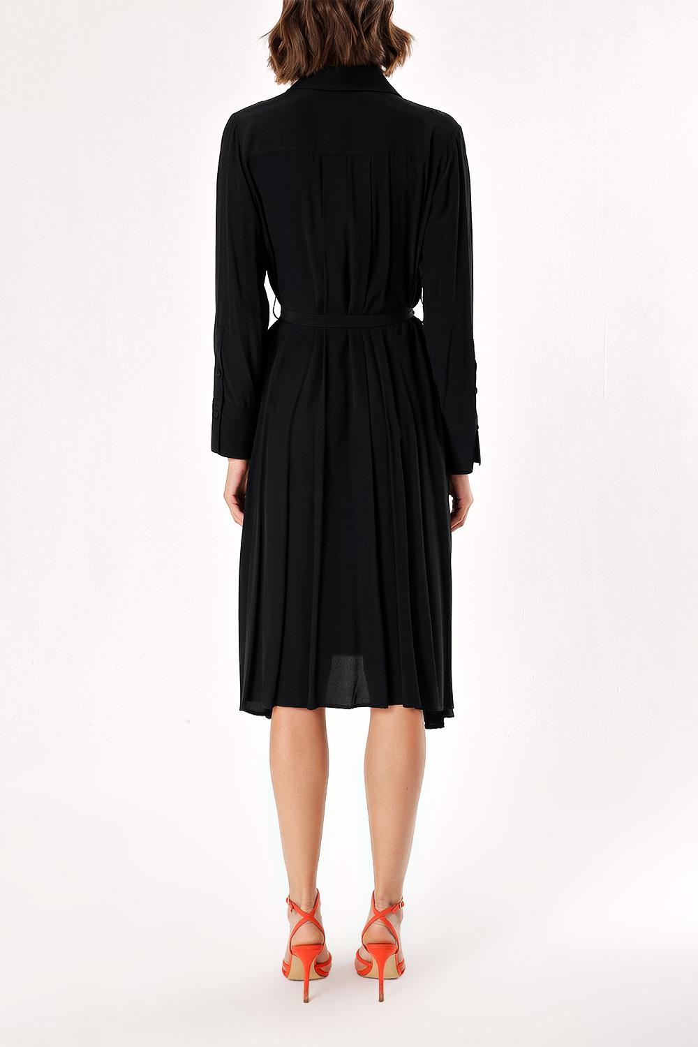 Siyah Bol kesim pili detaylı gömlek elbise 93828