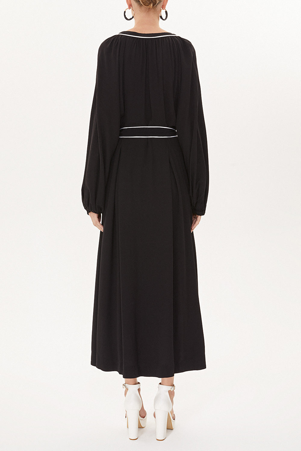 Siyah Boyalı Nakış detaylı uzun kollu elbise 93438