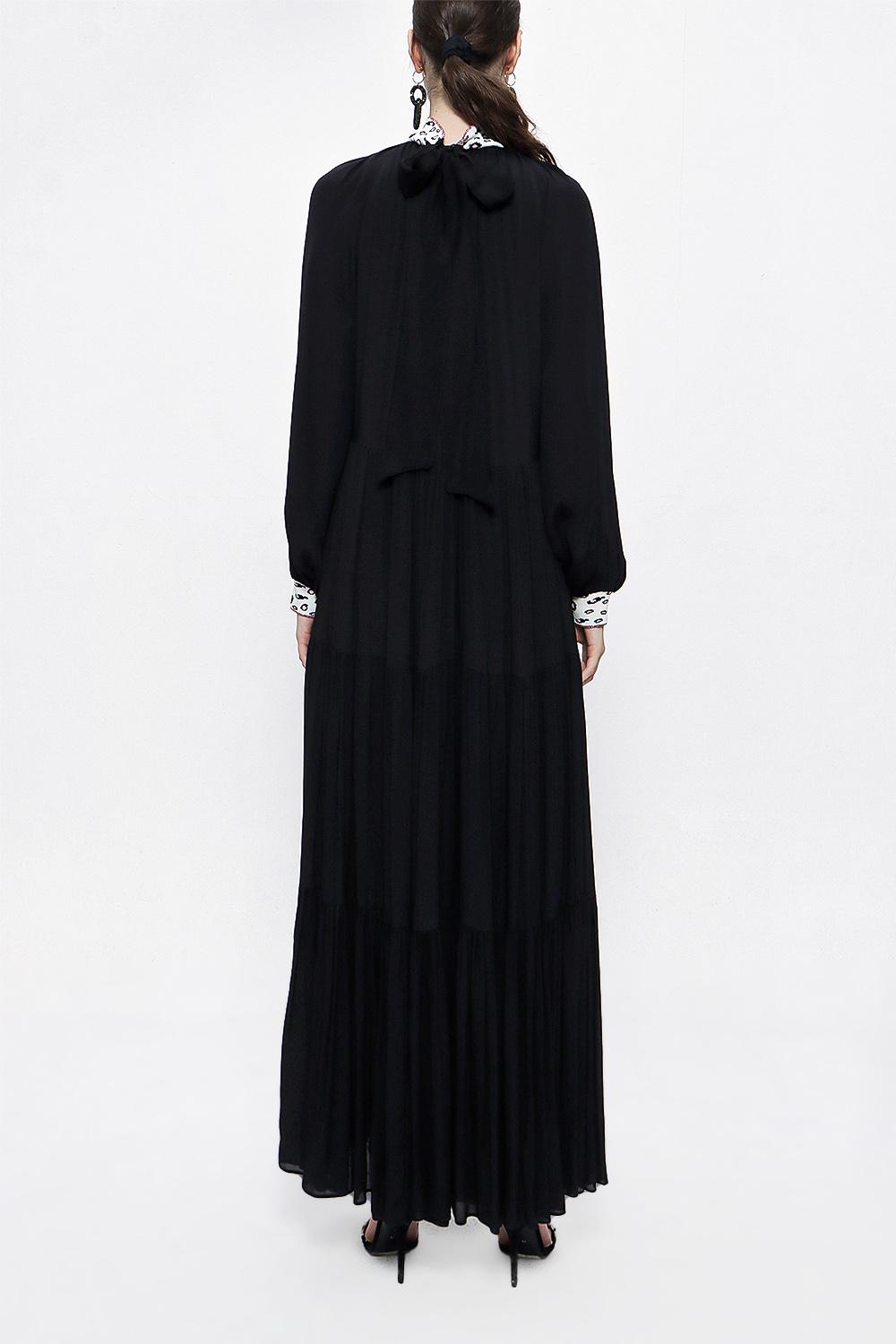 Siyah Büzgülü bol kesim uzun elbise 94158