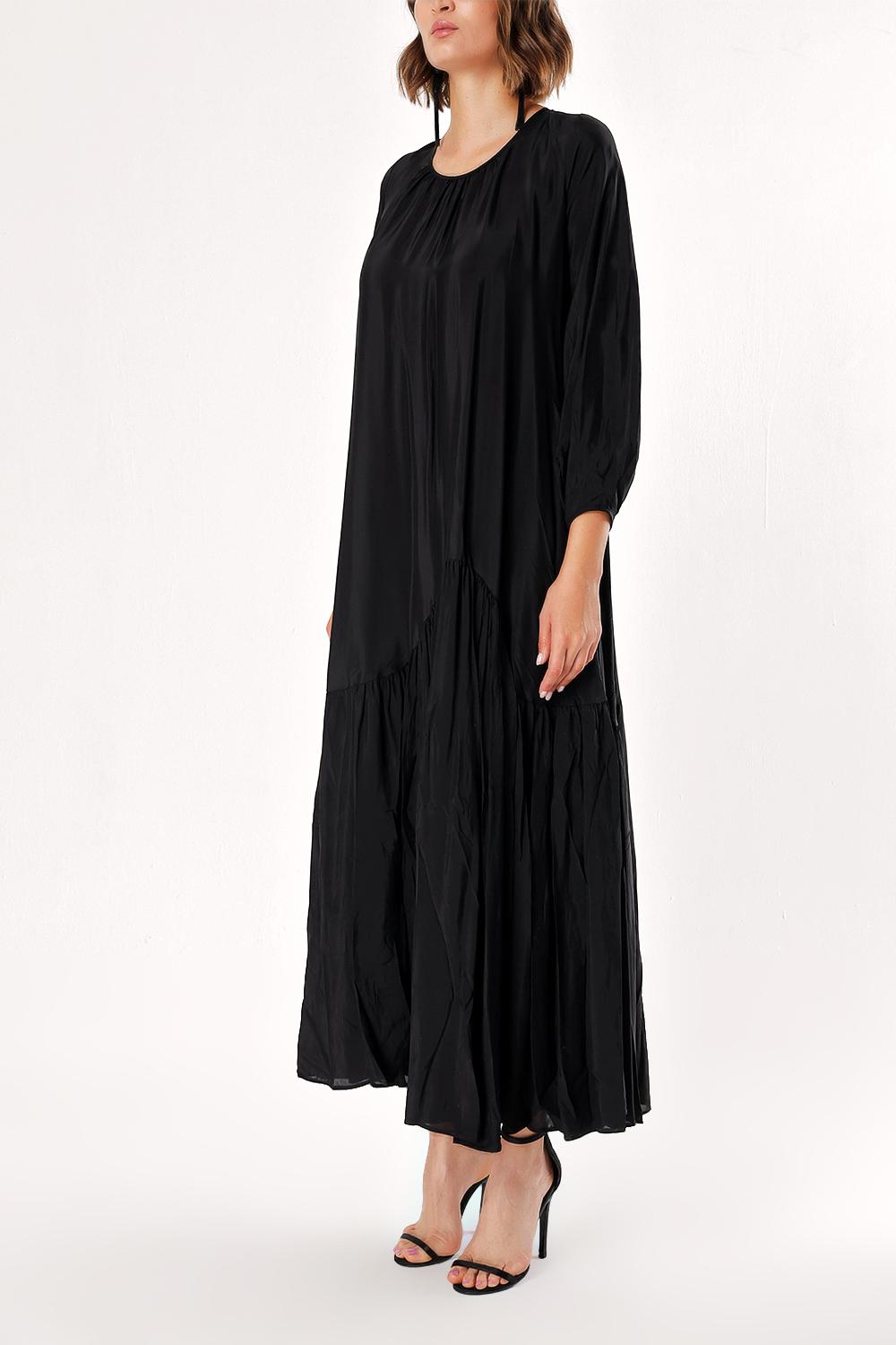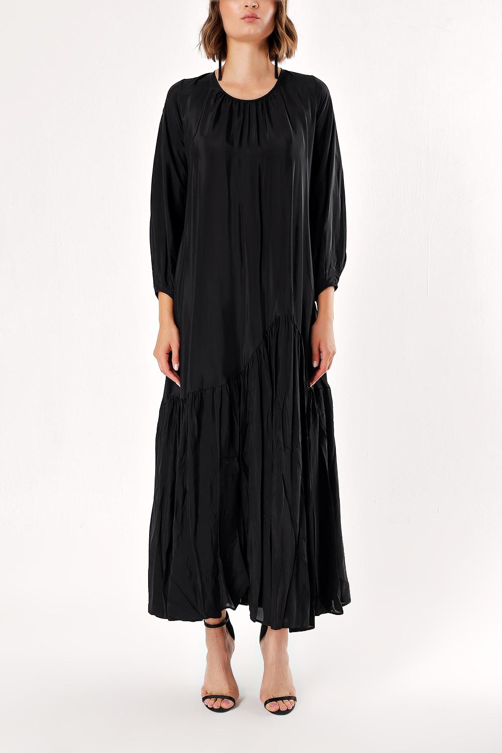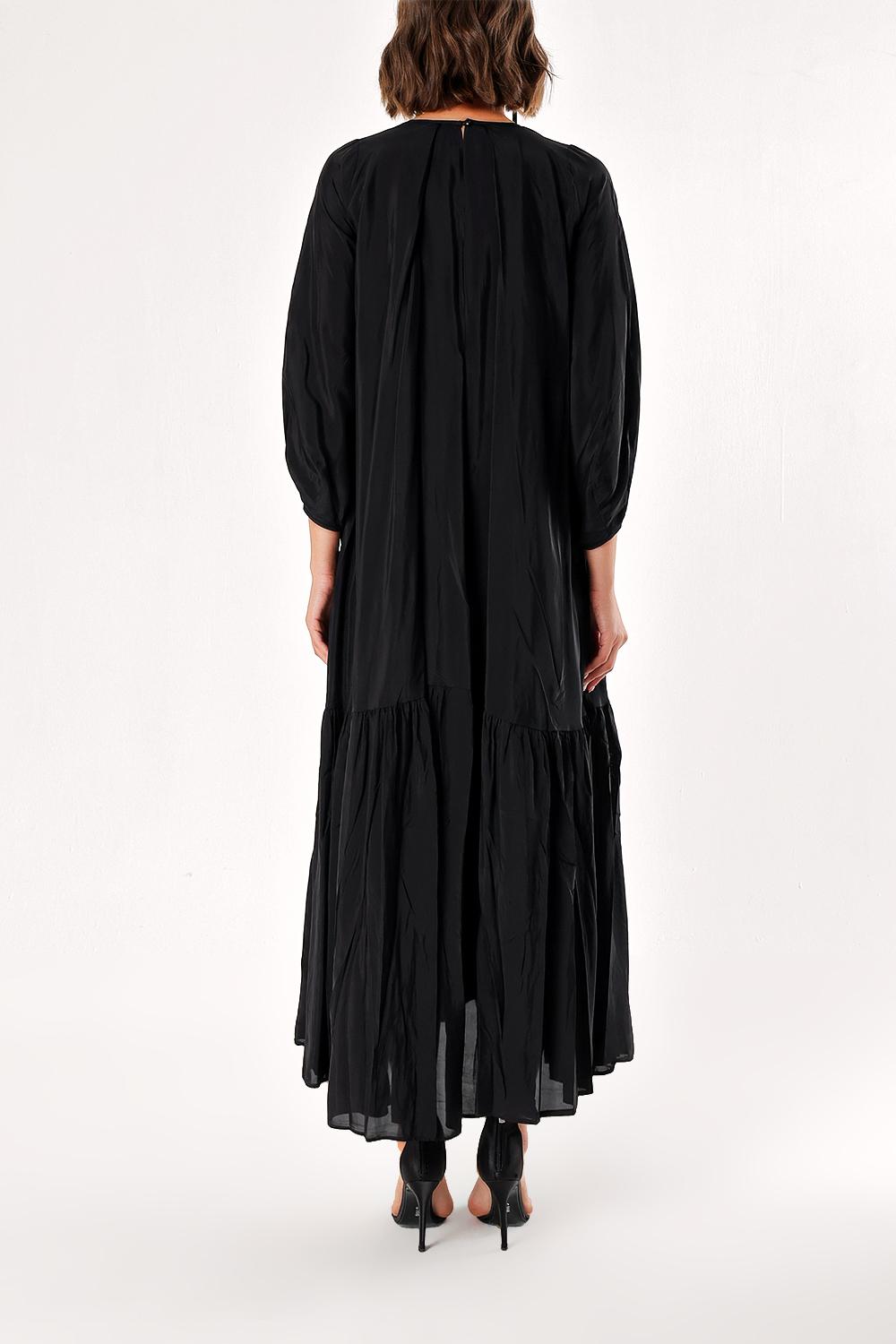 Siyah Büzgülü bol kesim uzun elbise 94288