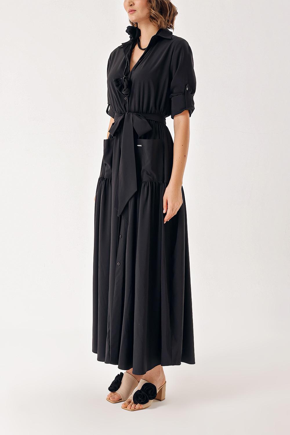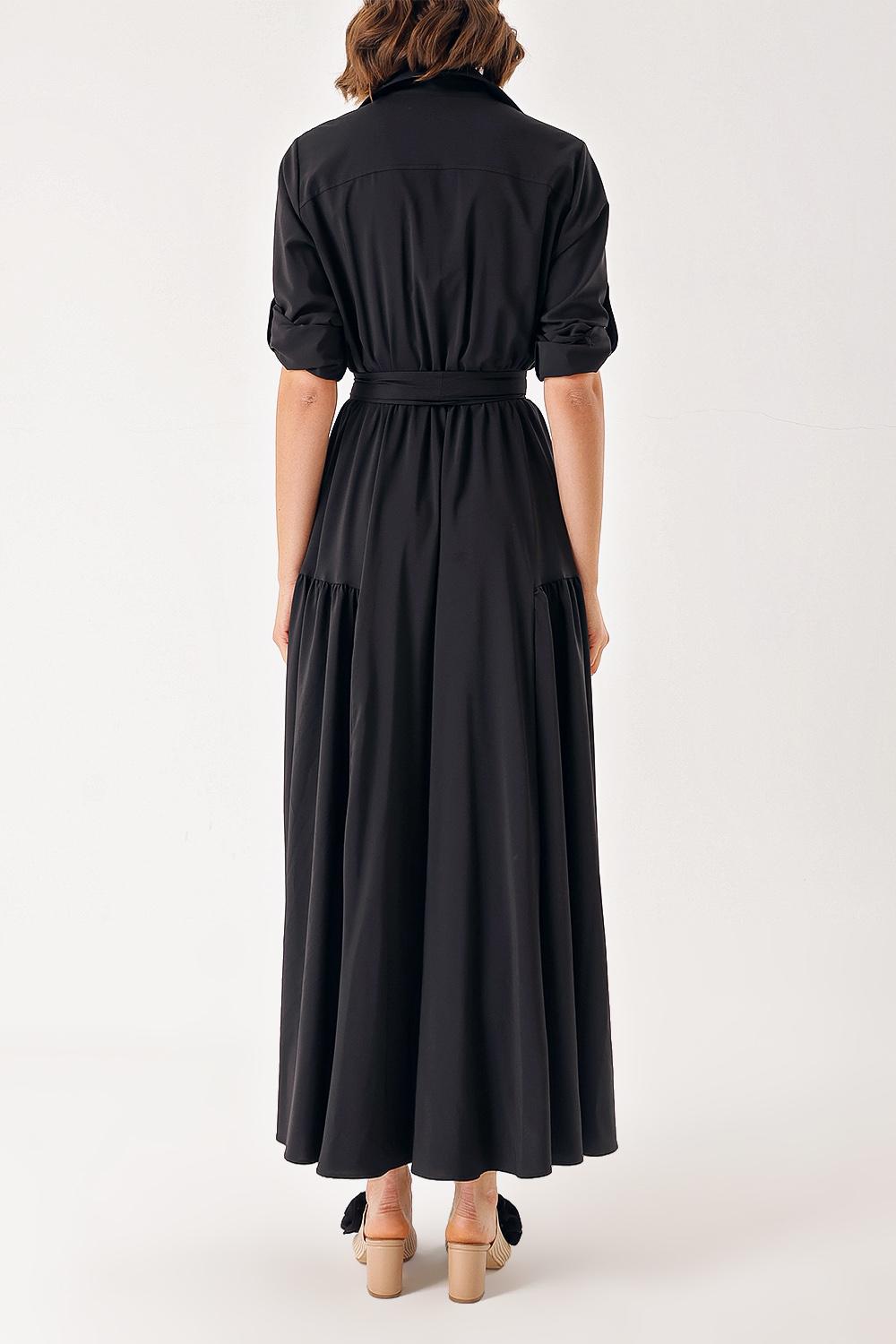 Siyah Büzgülü uzun gömlek elbise 94388