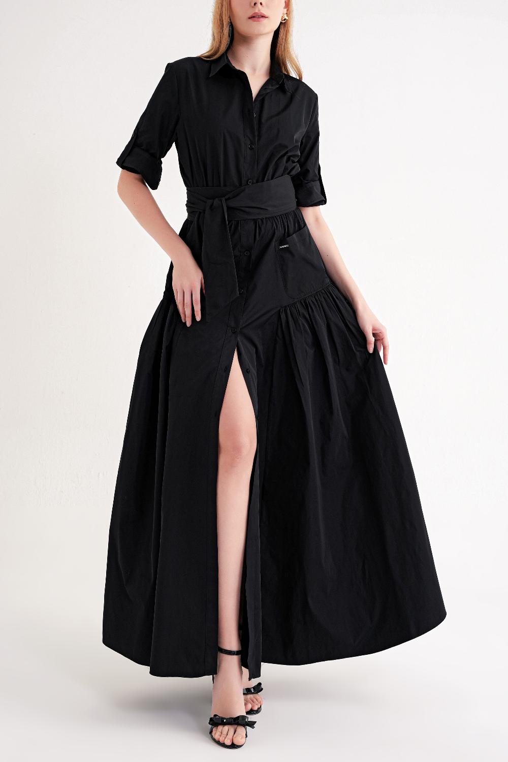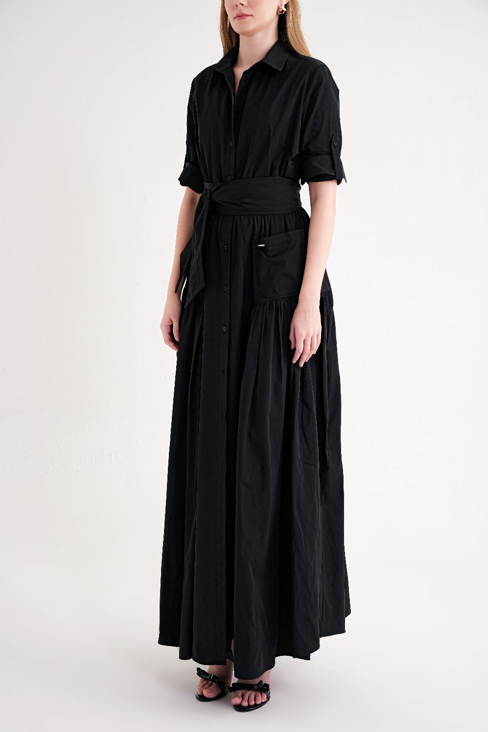 Siyah Büzgülü uzun tafta elbise 94646 RPT