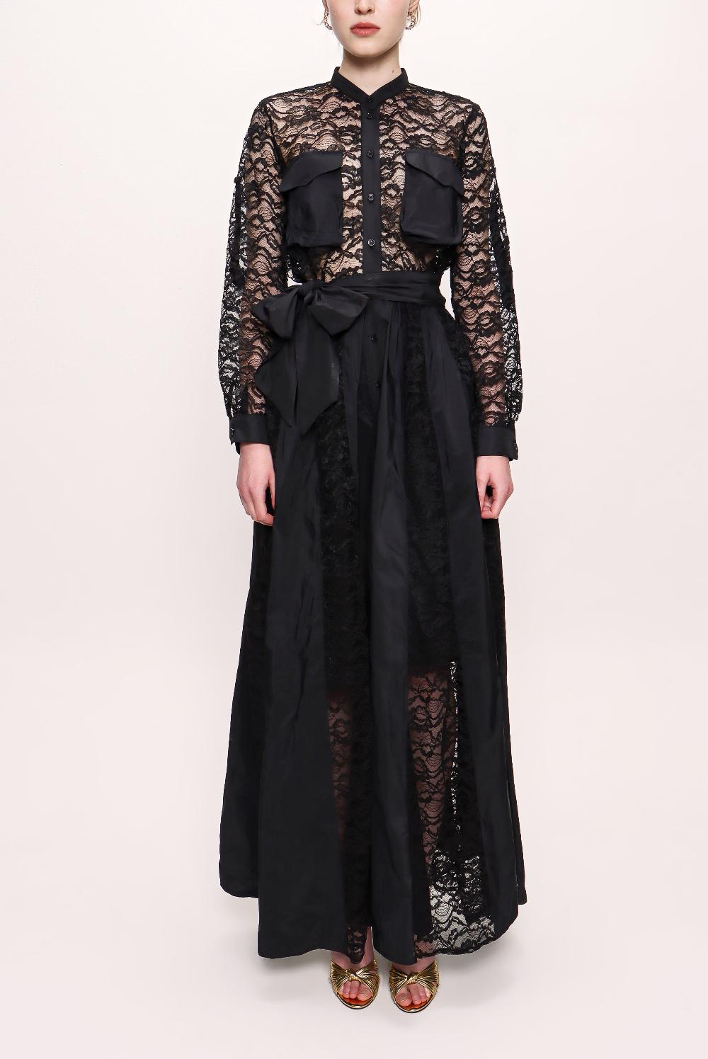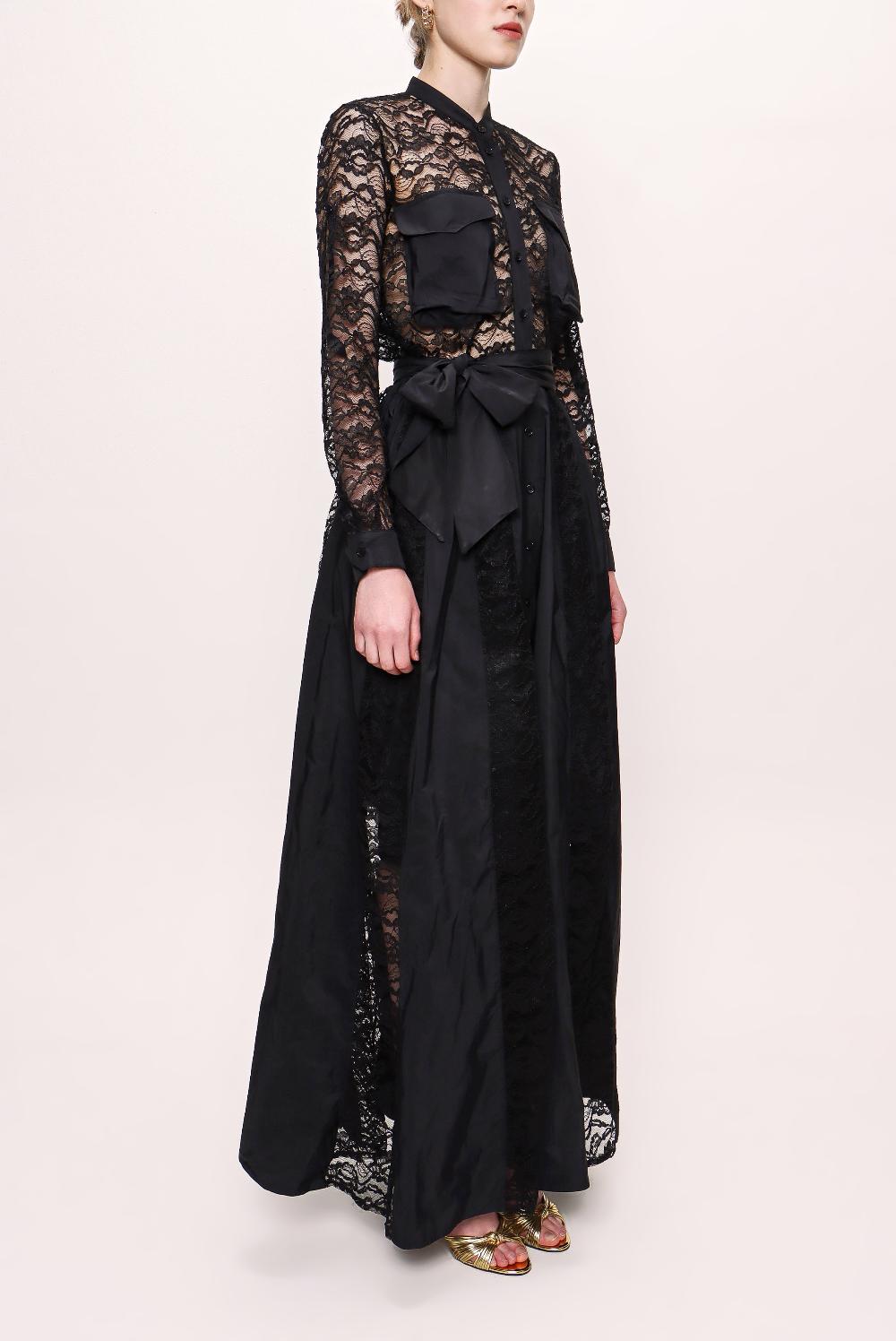 Siyah Dantelli uzun gömlek elbise 93009