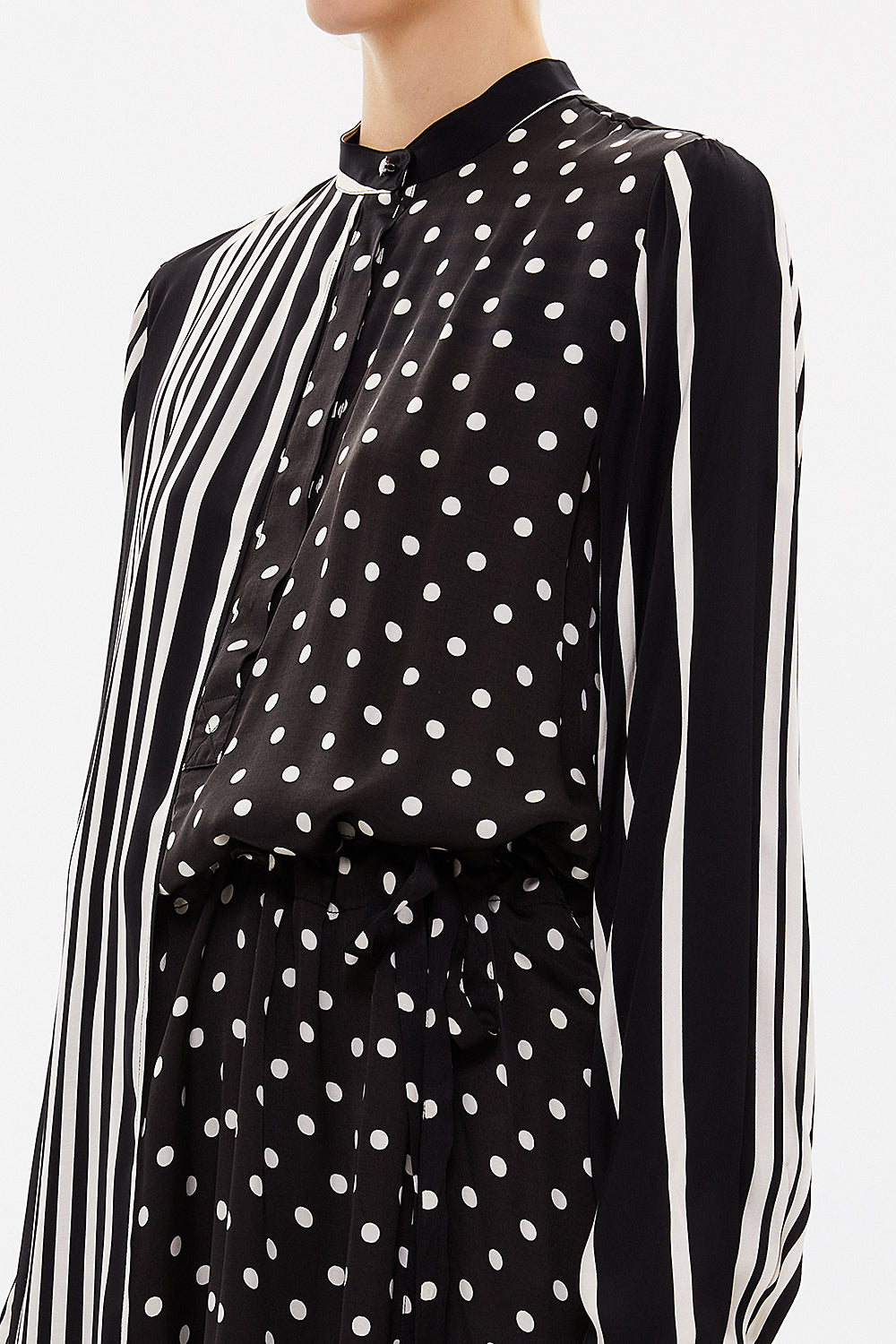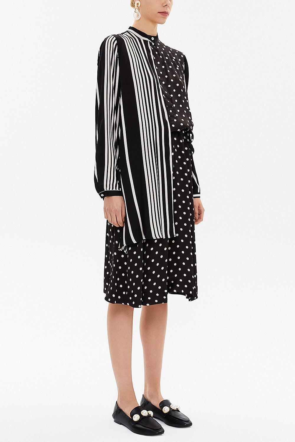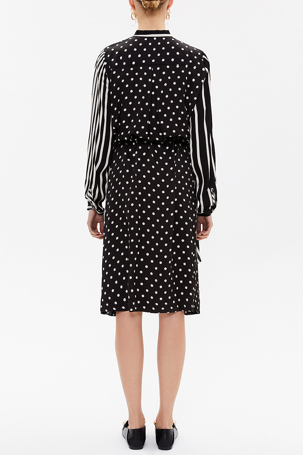Siyah Desen kombinli beli kuşaklı önden düğmel midii elbise 92805