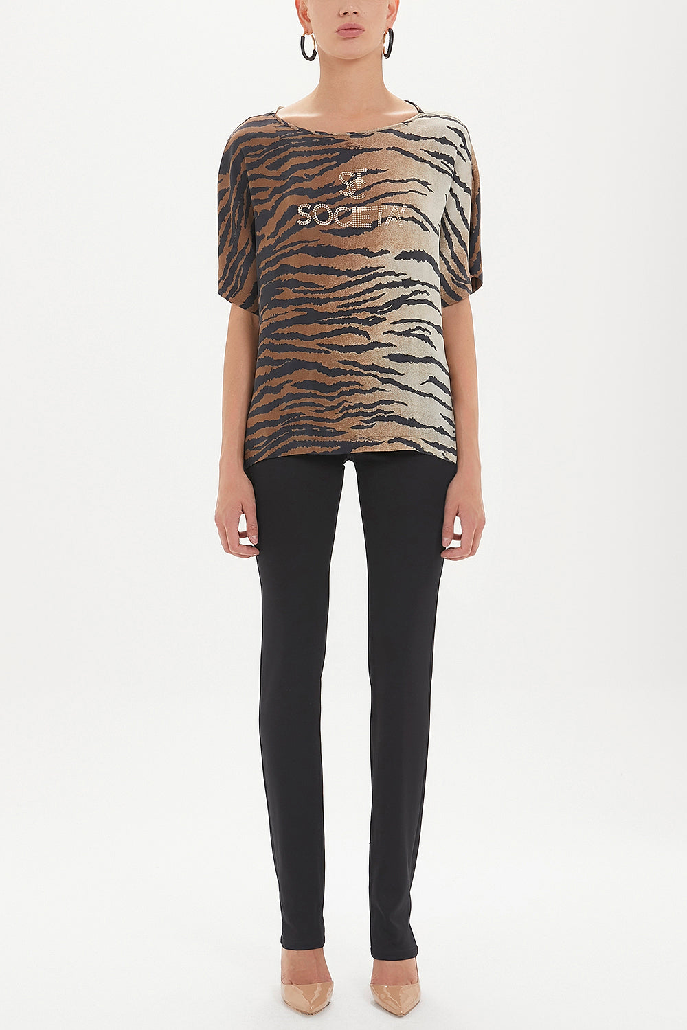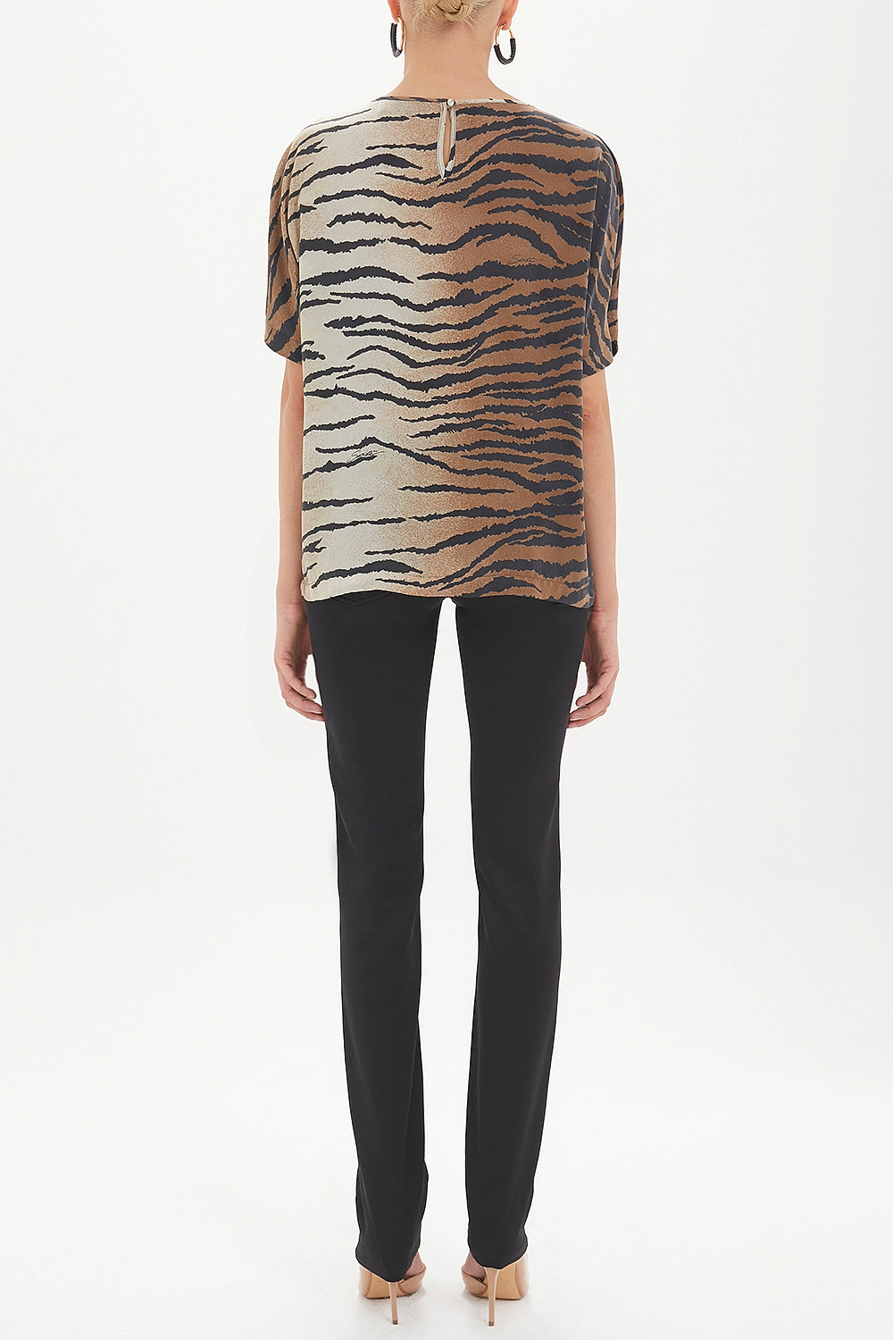 Siyah Desenli bol kesim bluz 19192