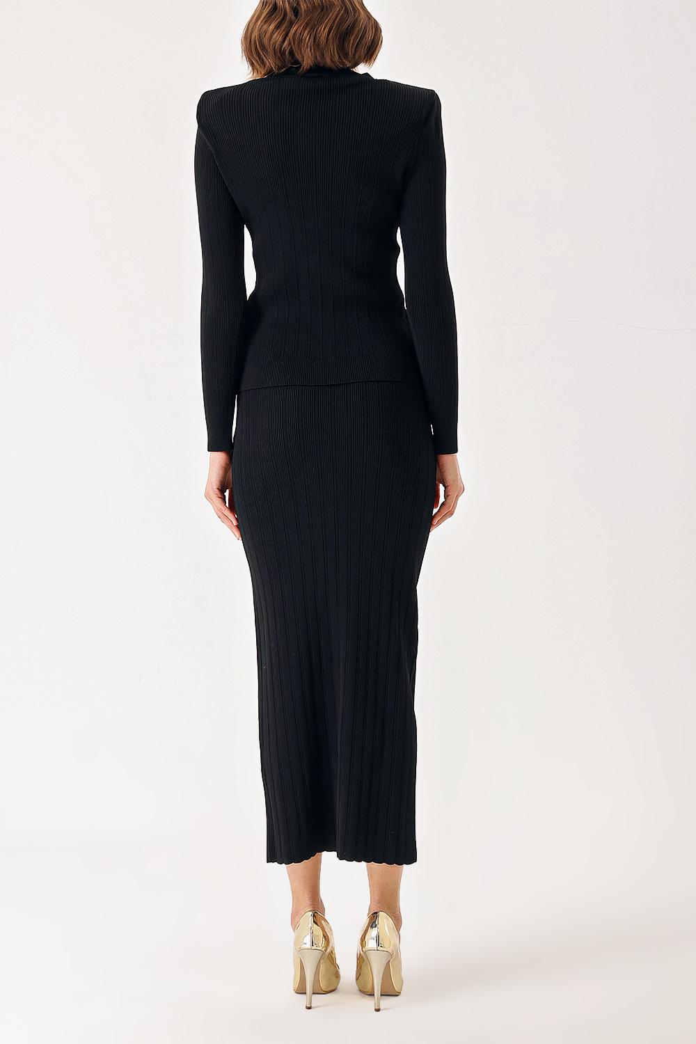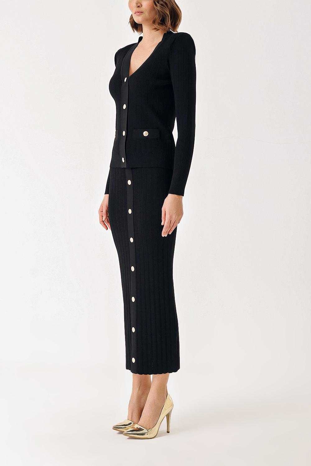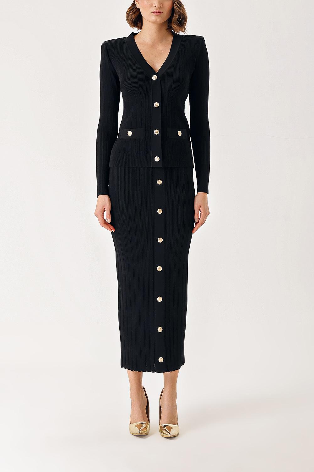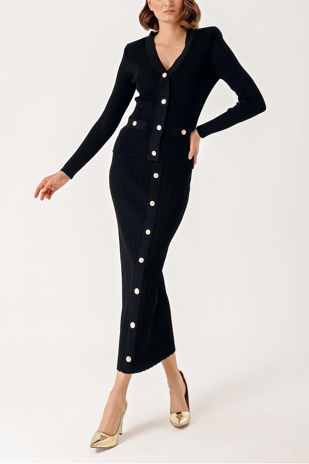 Siyah Düğme detaylı hırka ve etekli takım 28850