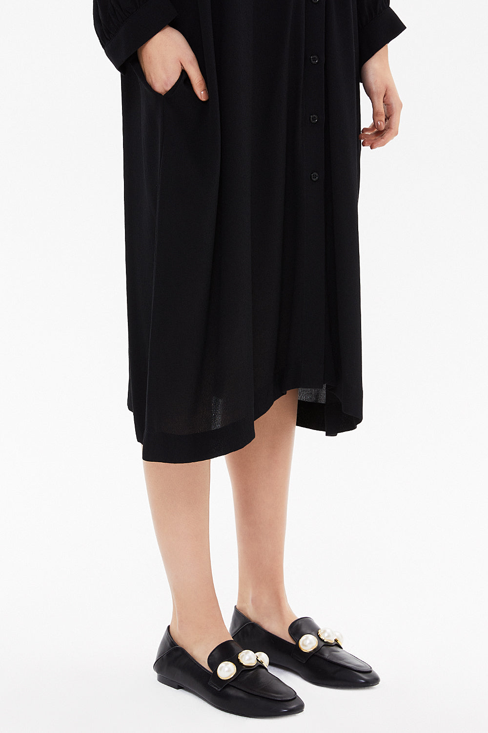Siyah Düşük omuz cepli midi elbise 92478