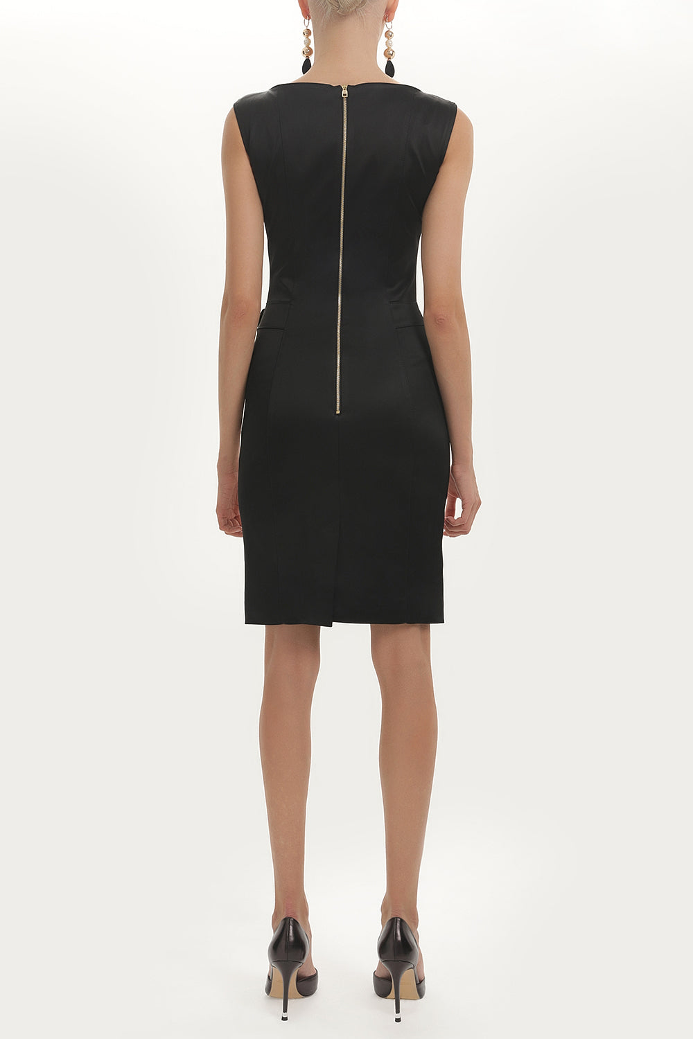 Siyah Ekru Kontrast kemerli dar kesim mini elbise 90794
