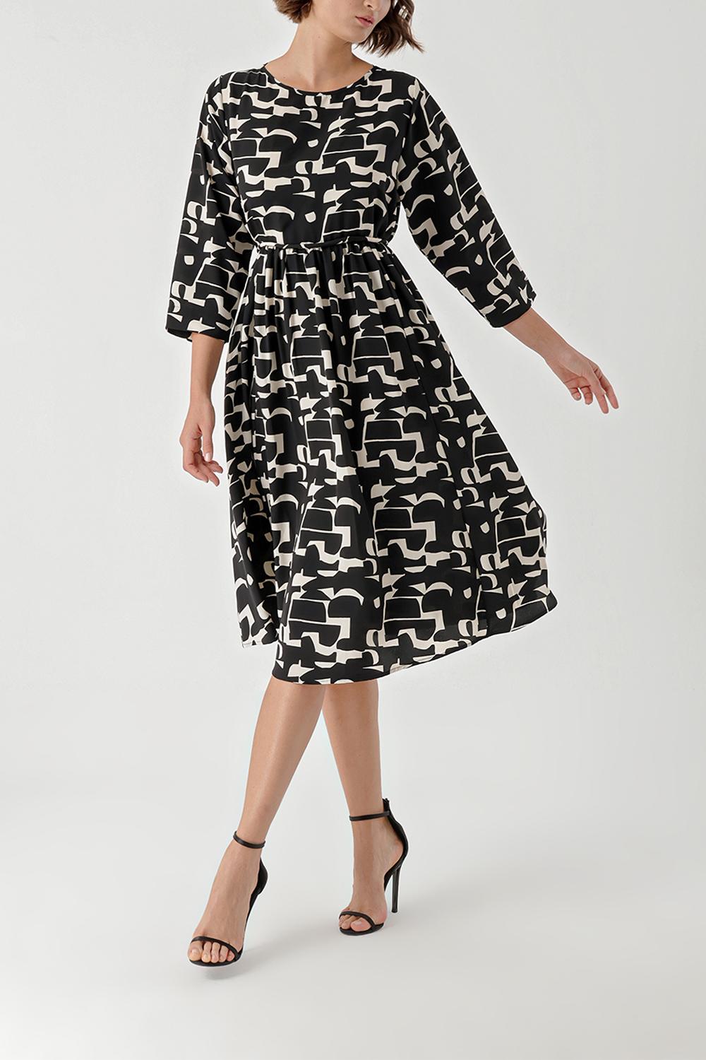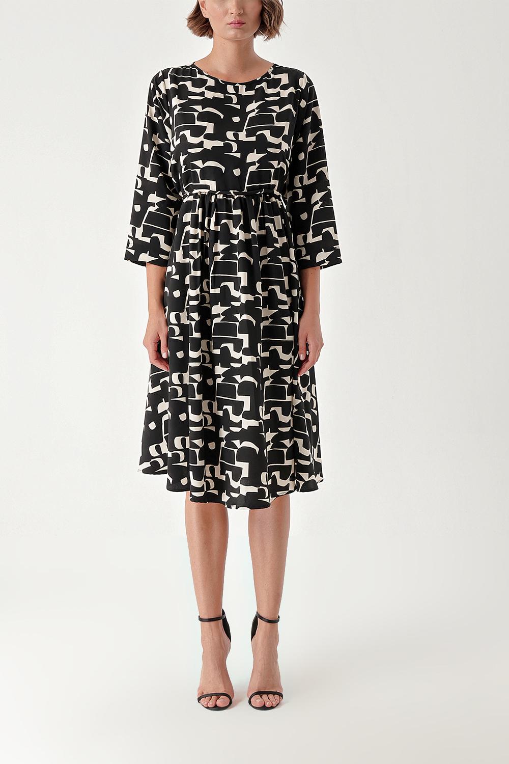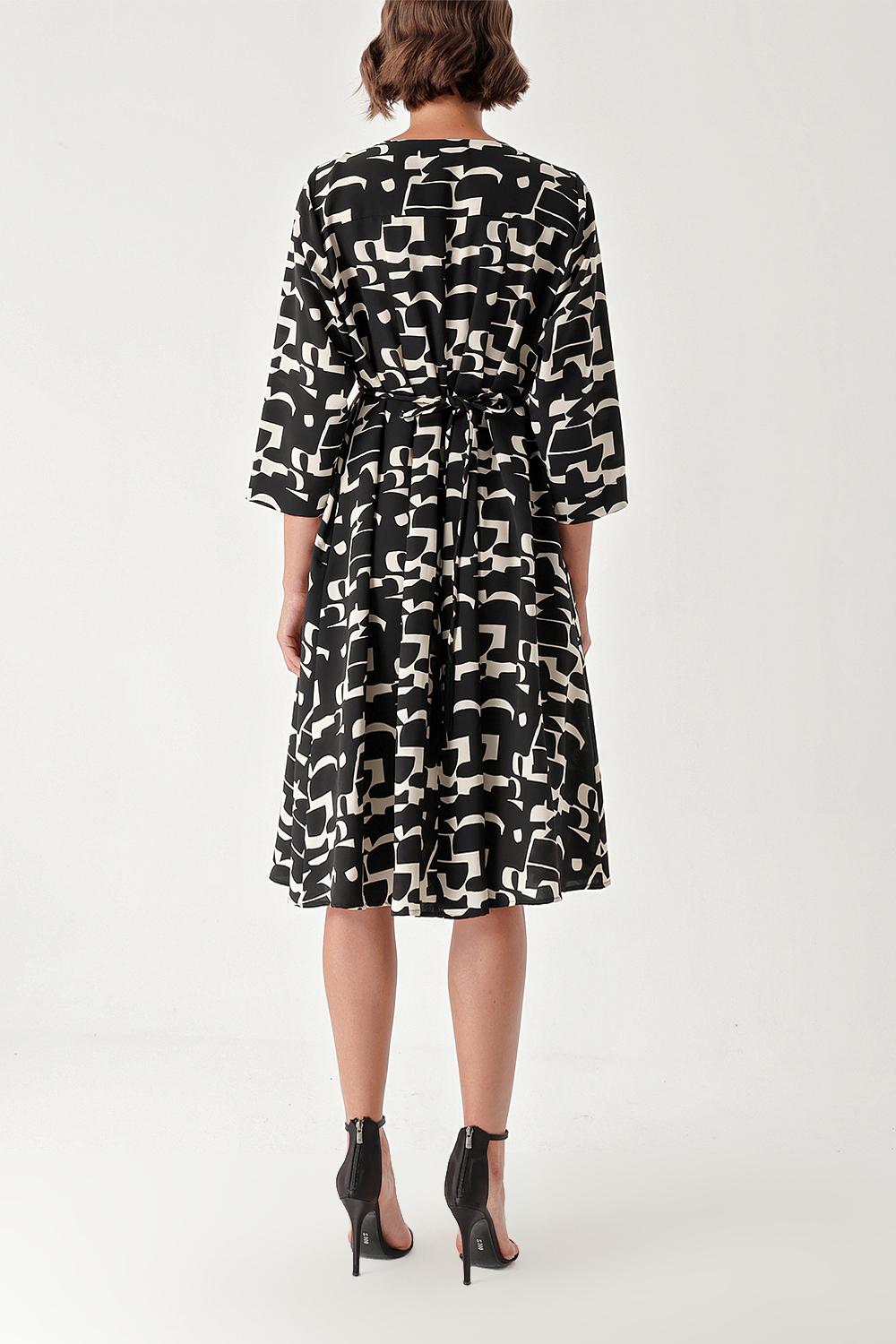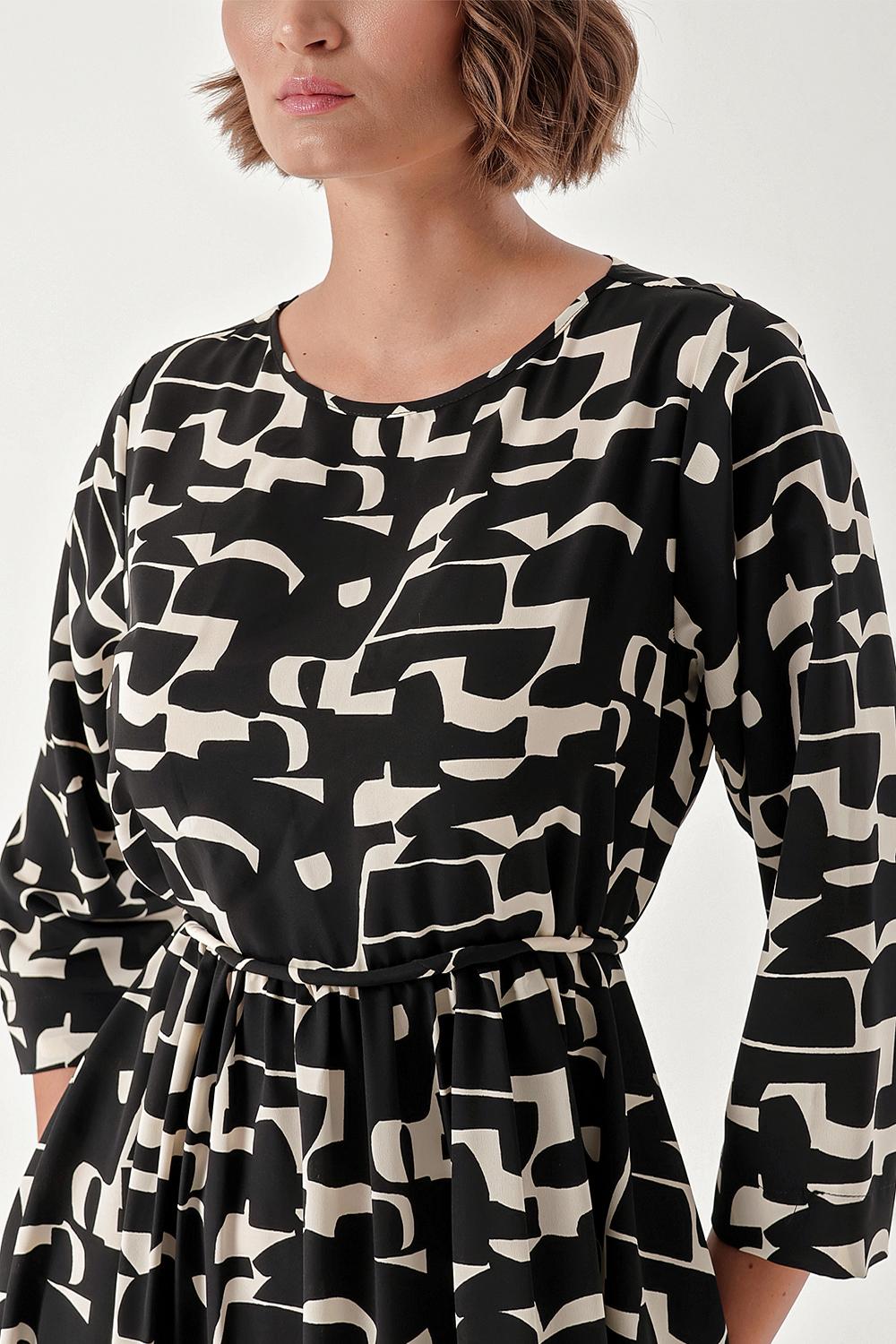 Siyah Ekru Loose fit dress with tassel belt detail 94366