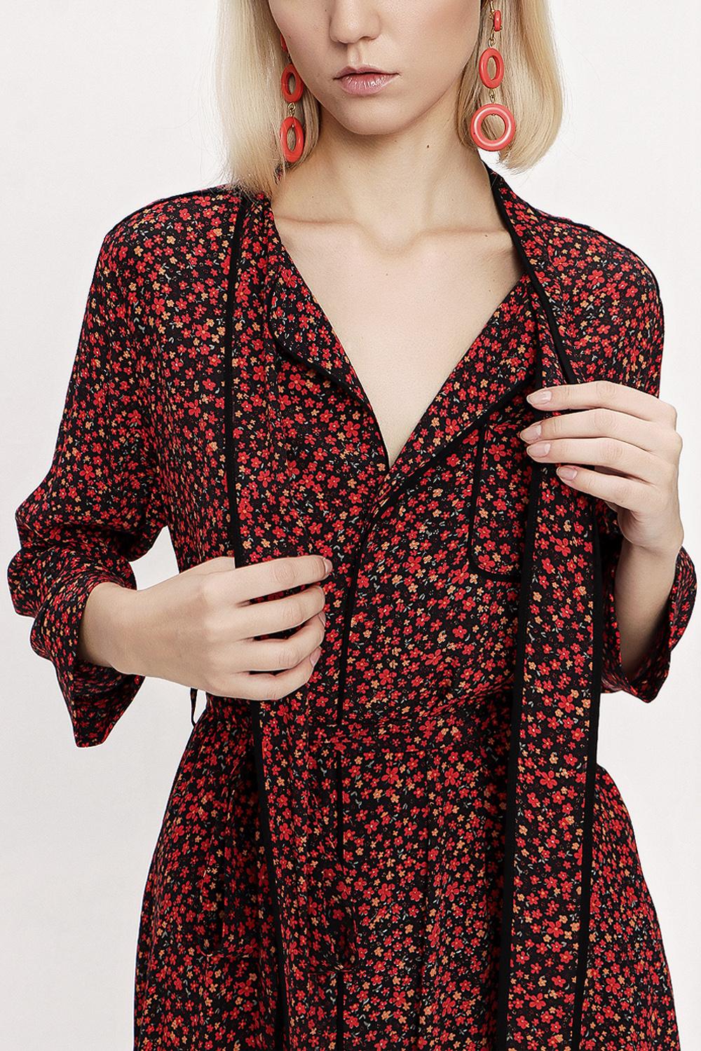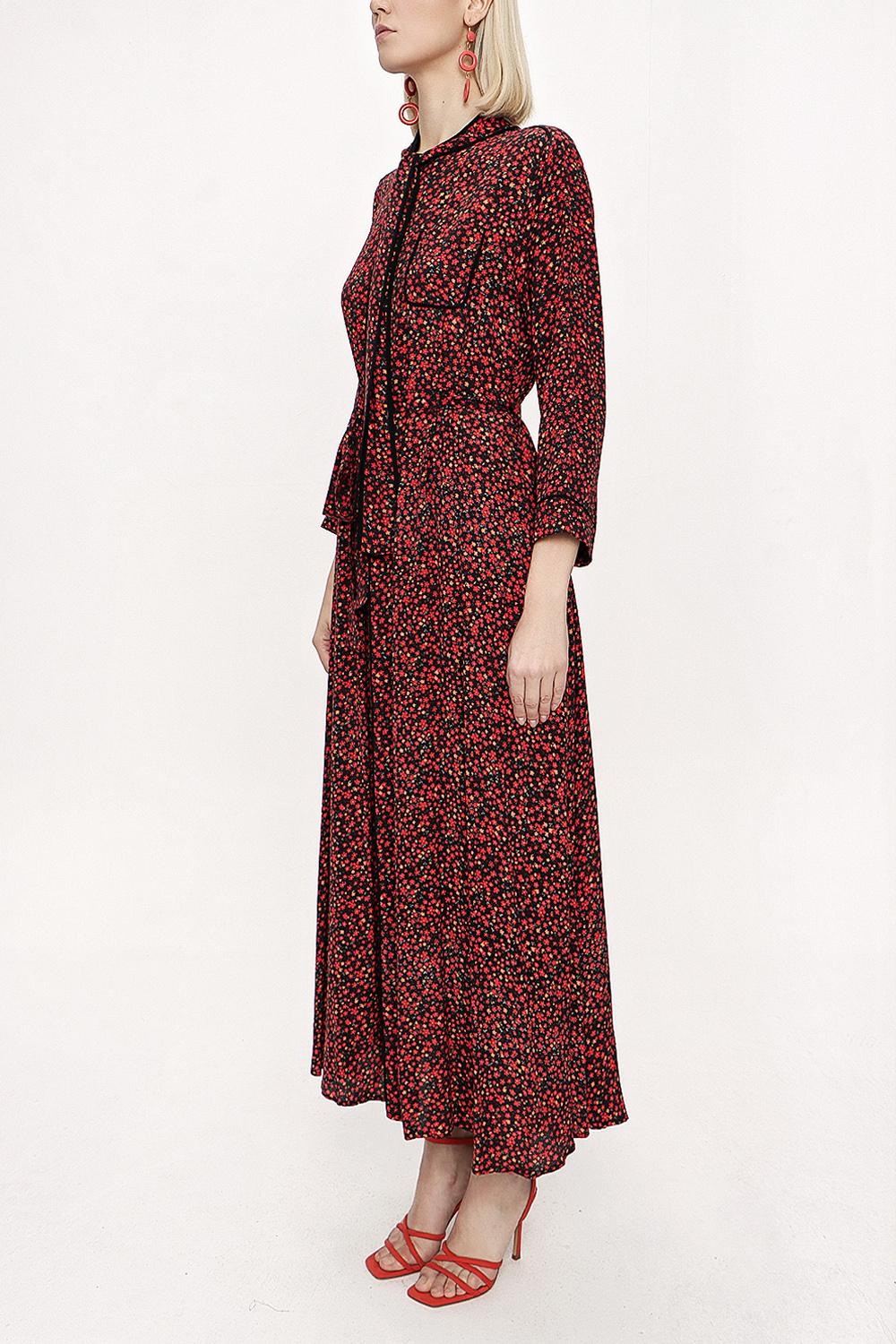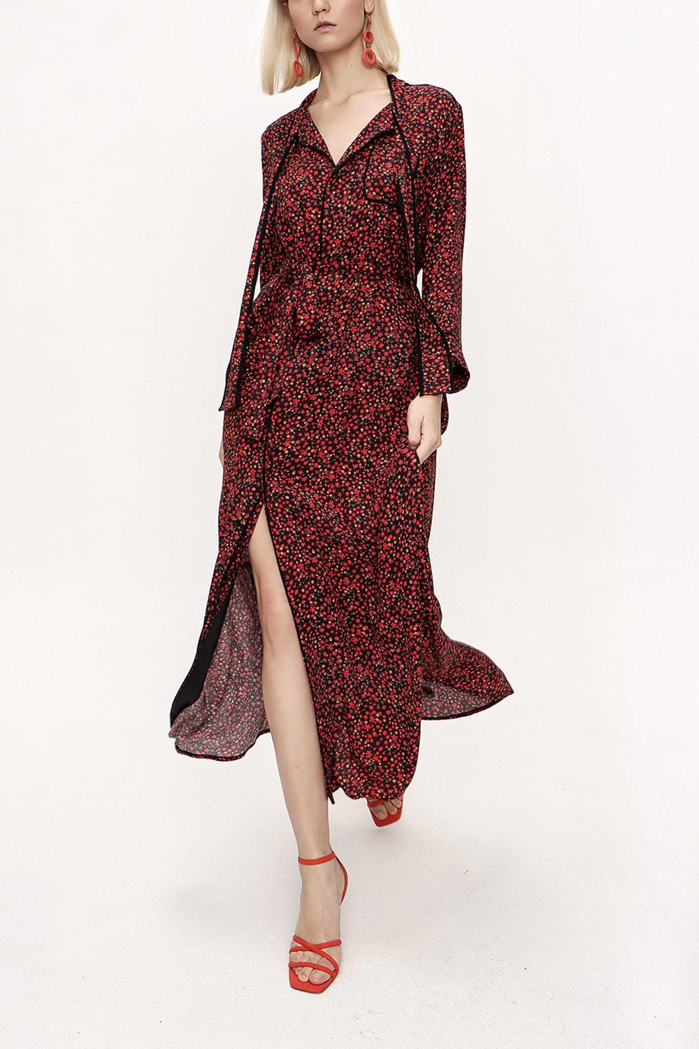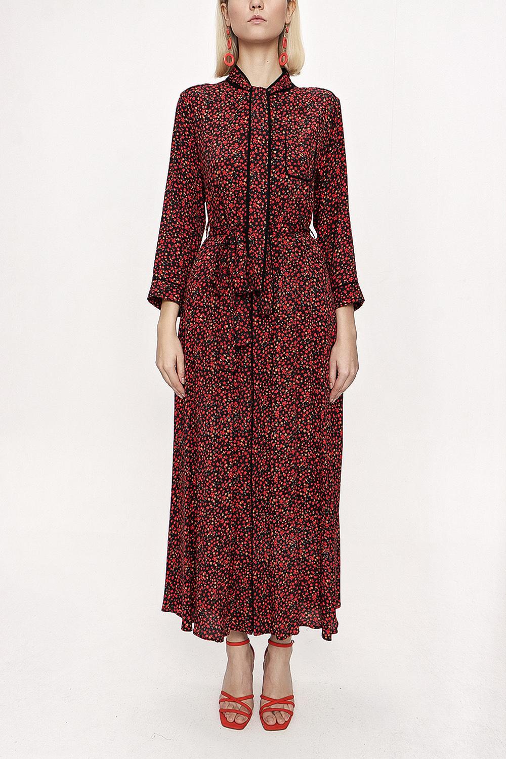 Siyah Kırmızı Biyeli uzun gömlek elbise 94085