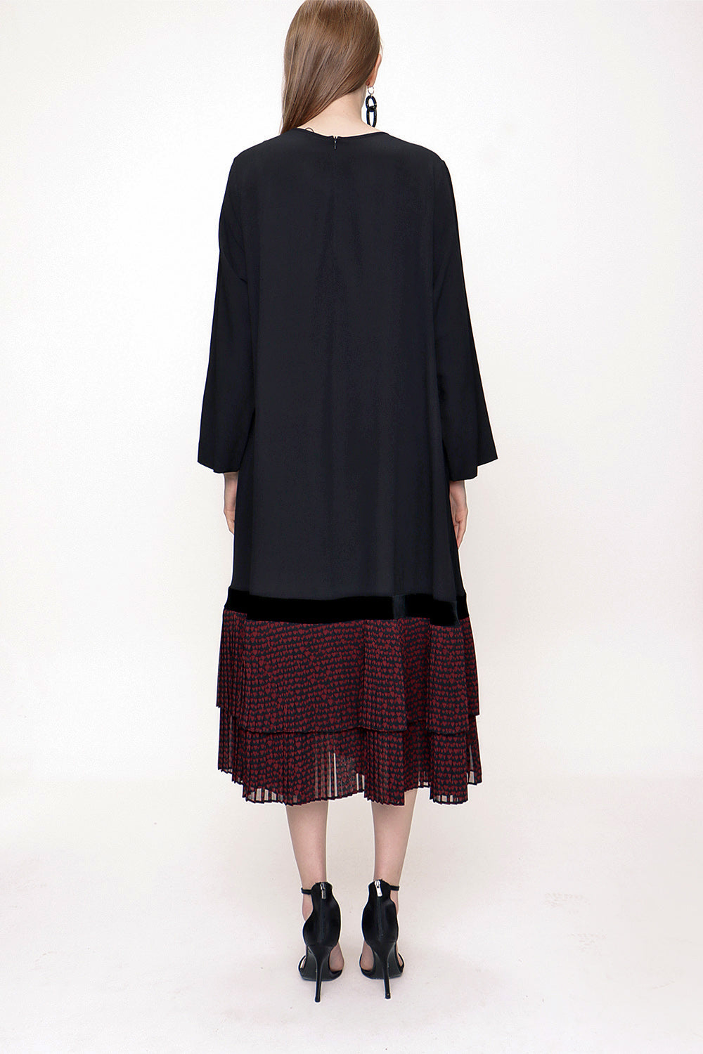 Siyah Kırmızı Pileli bol kesim elbise 93703