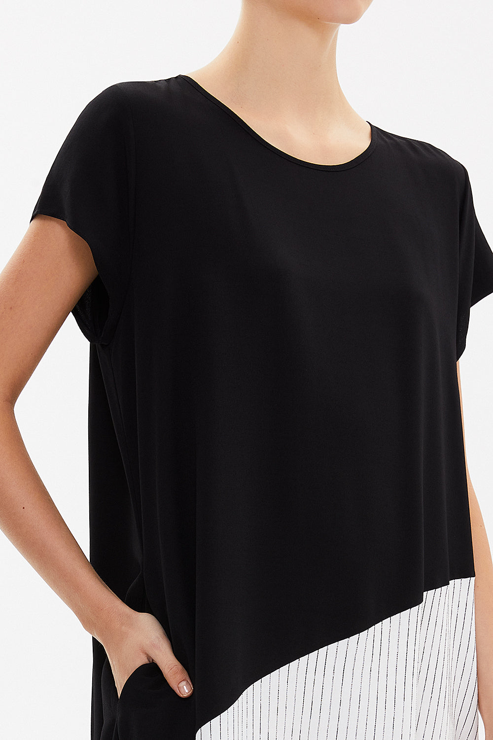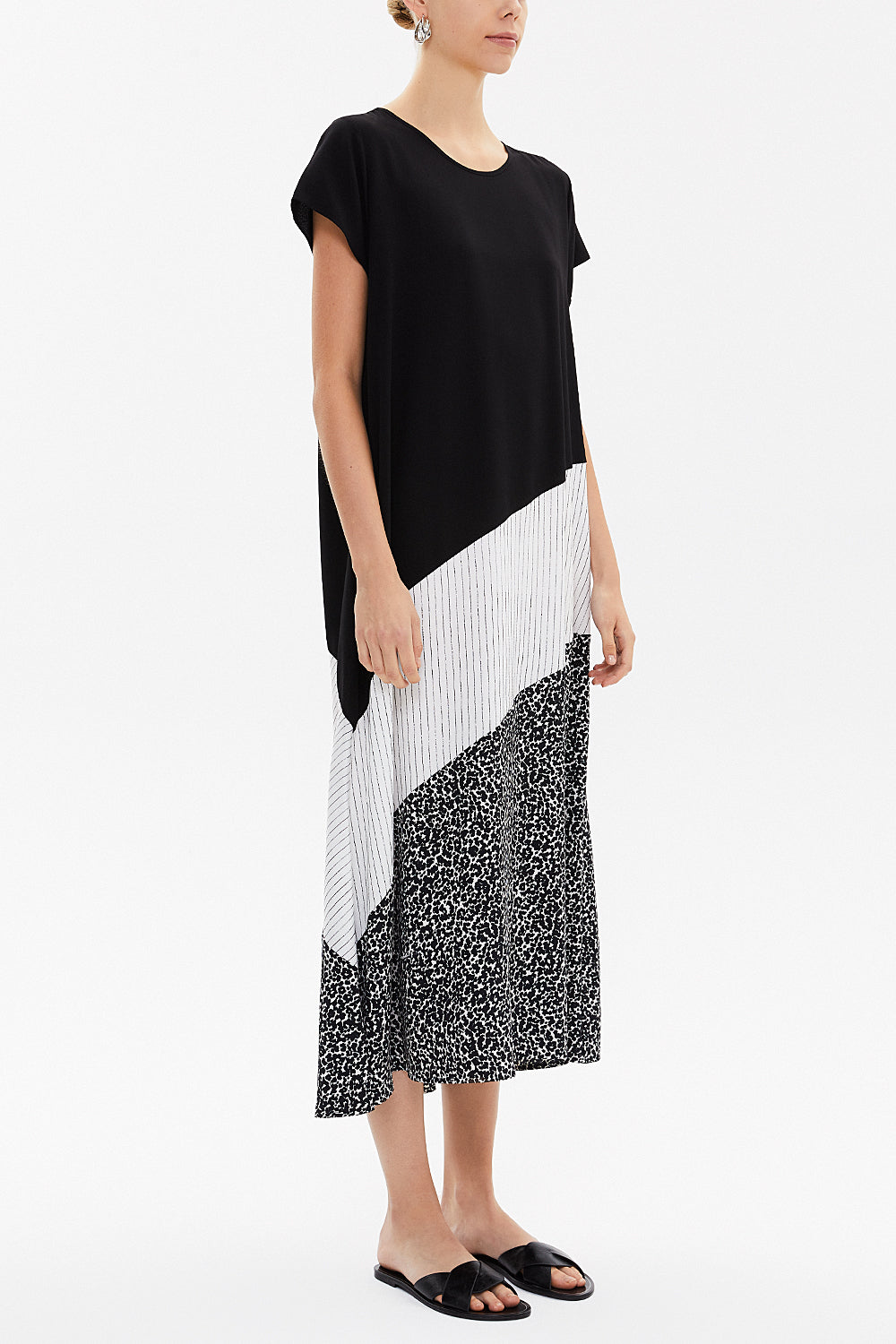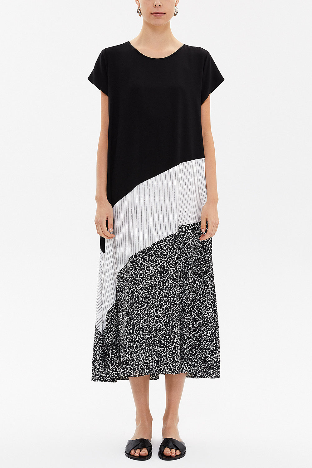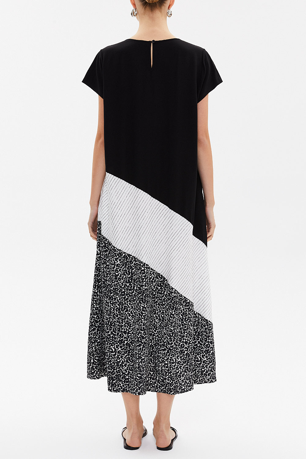 Siyah Kısa kollu verev kesim midi elbise 93149