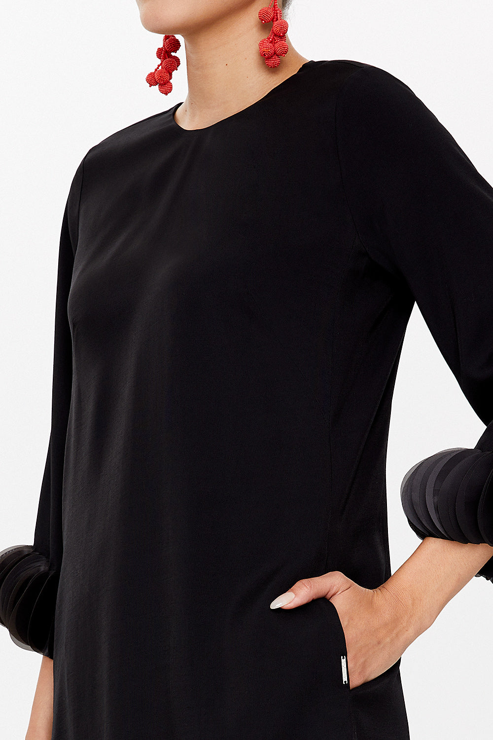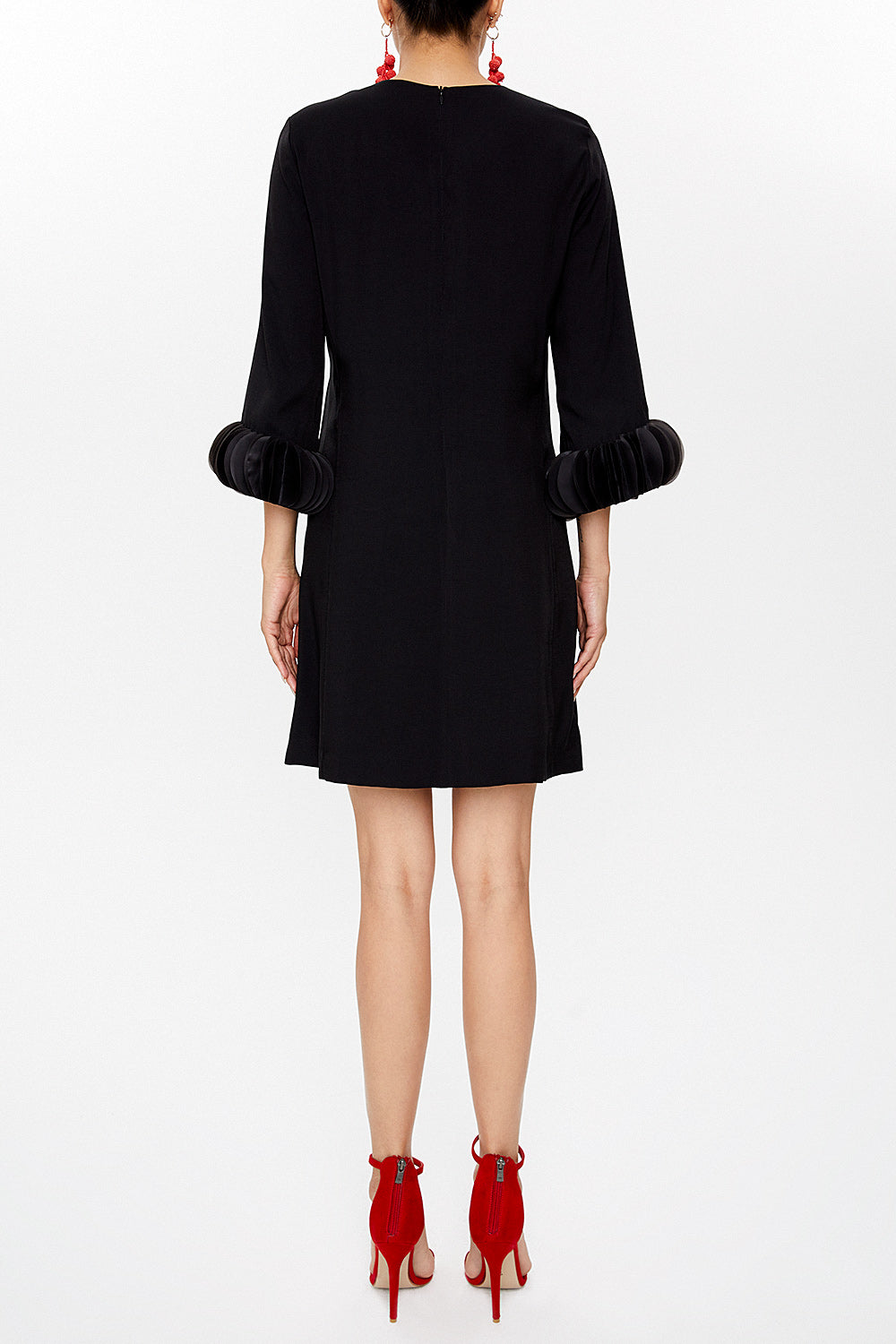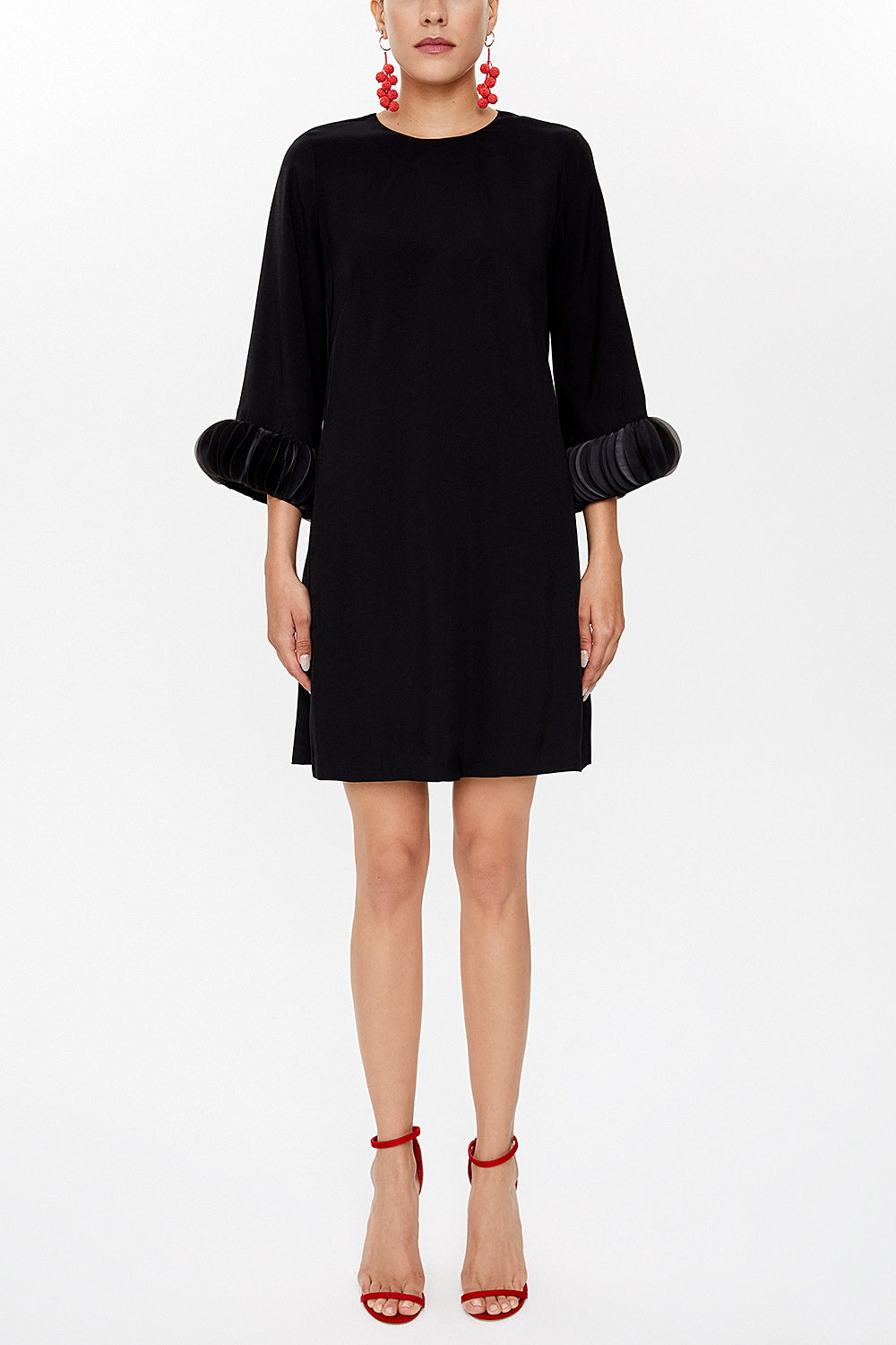 Siyah Kolları aksesuar detaylı mini elbise 93051