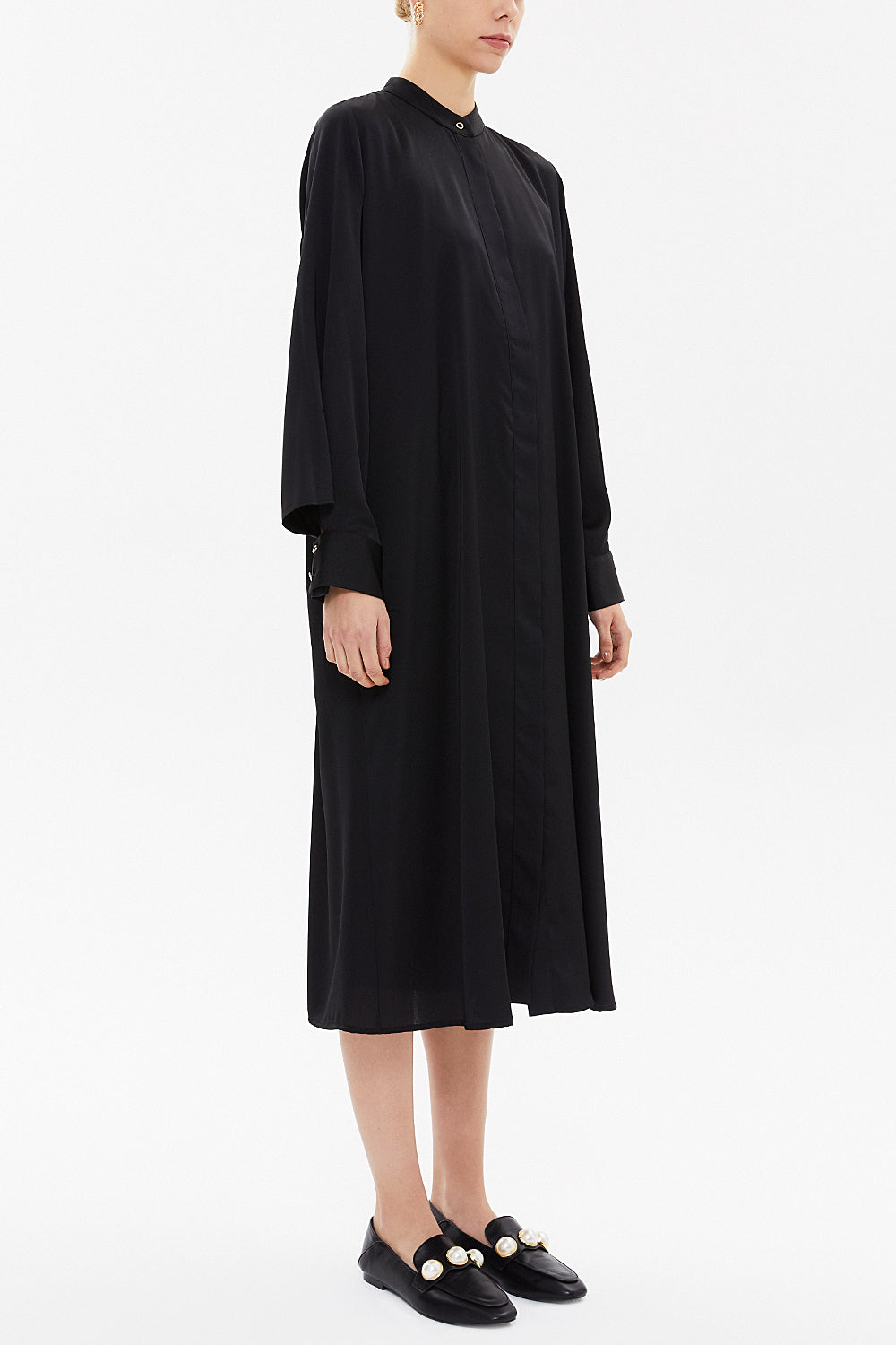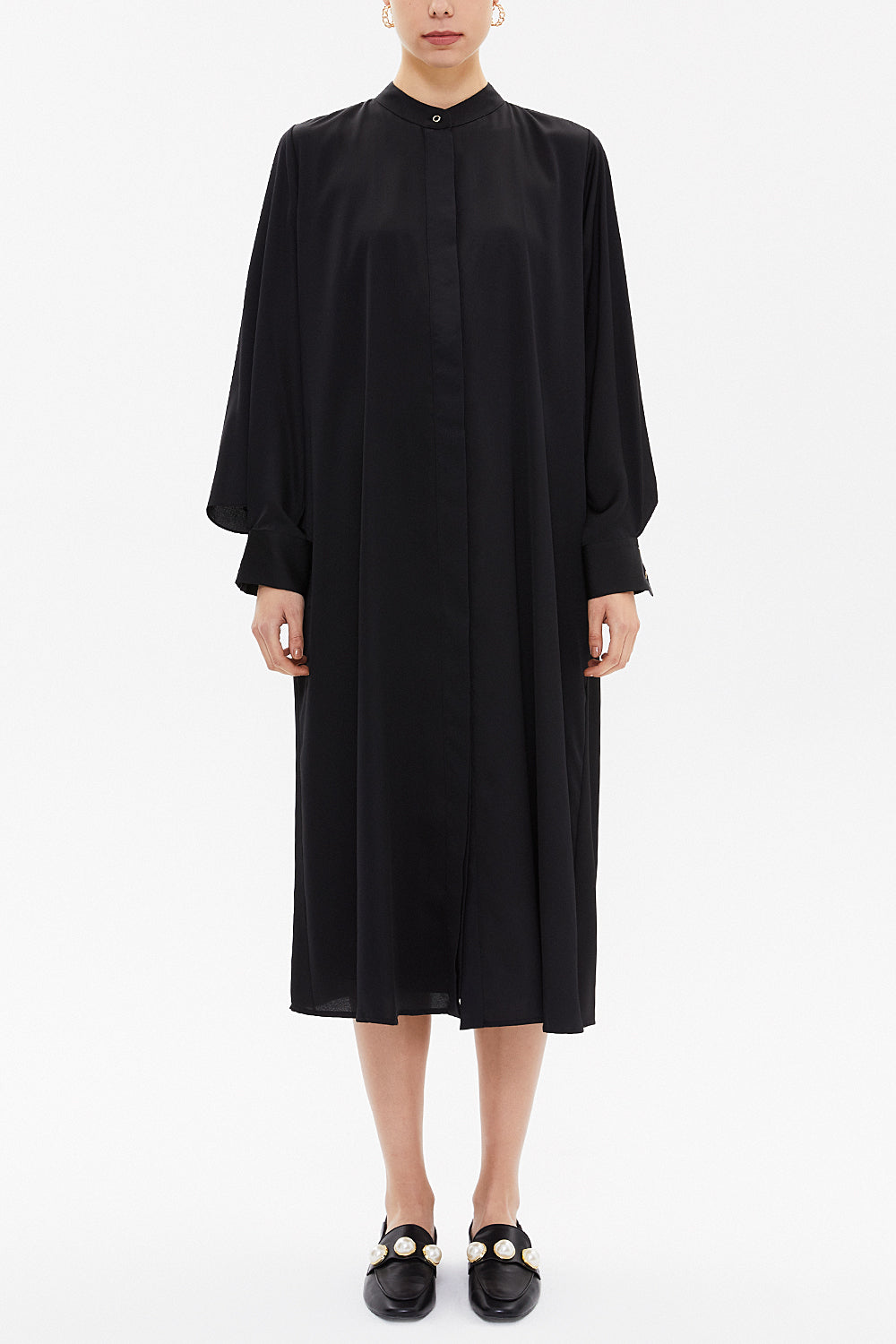 Siyah Kollu detaylı salaş midi elbise 93052