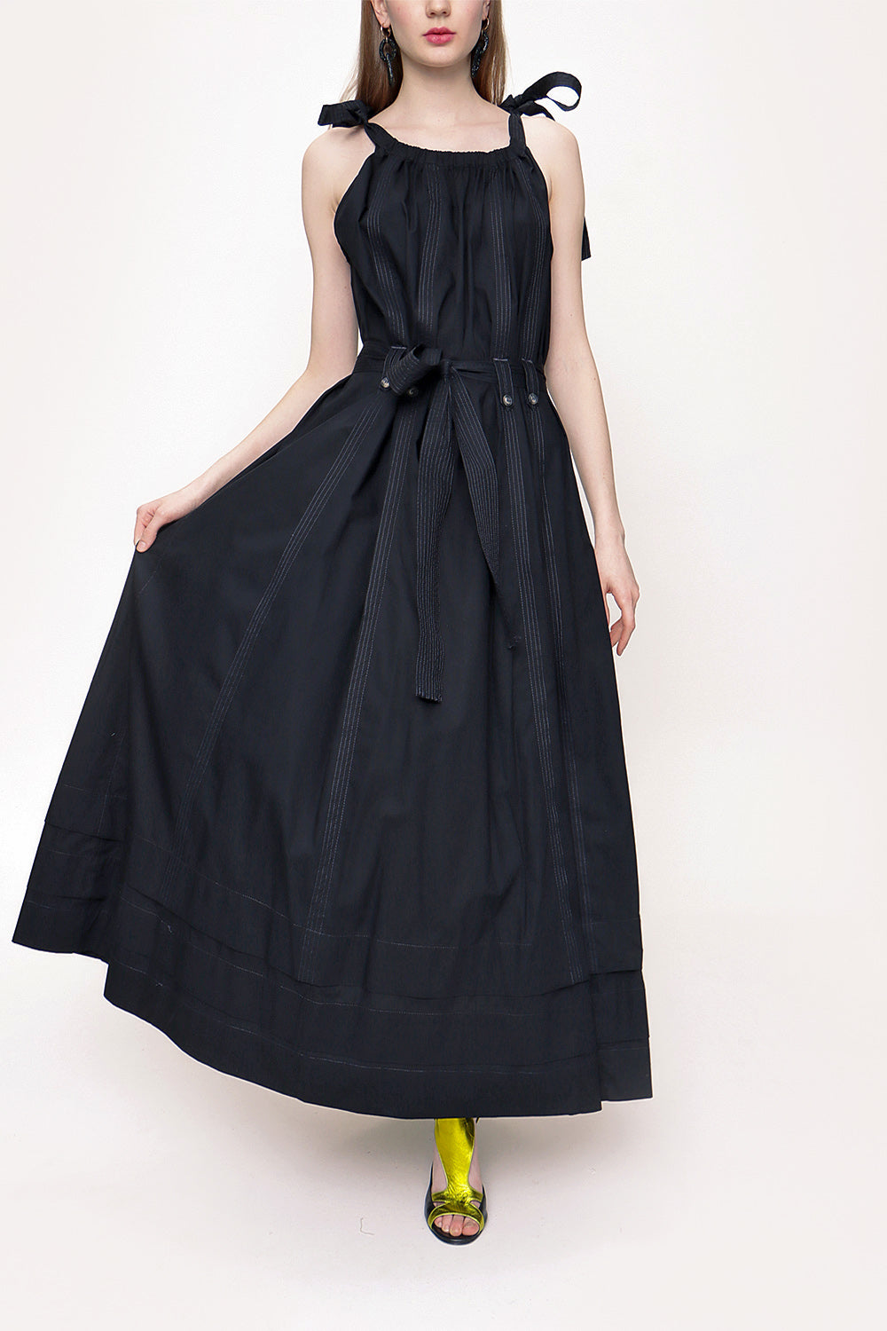 Siyah Kolsuz bol kesim poplin elbise 93542