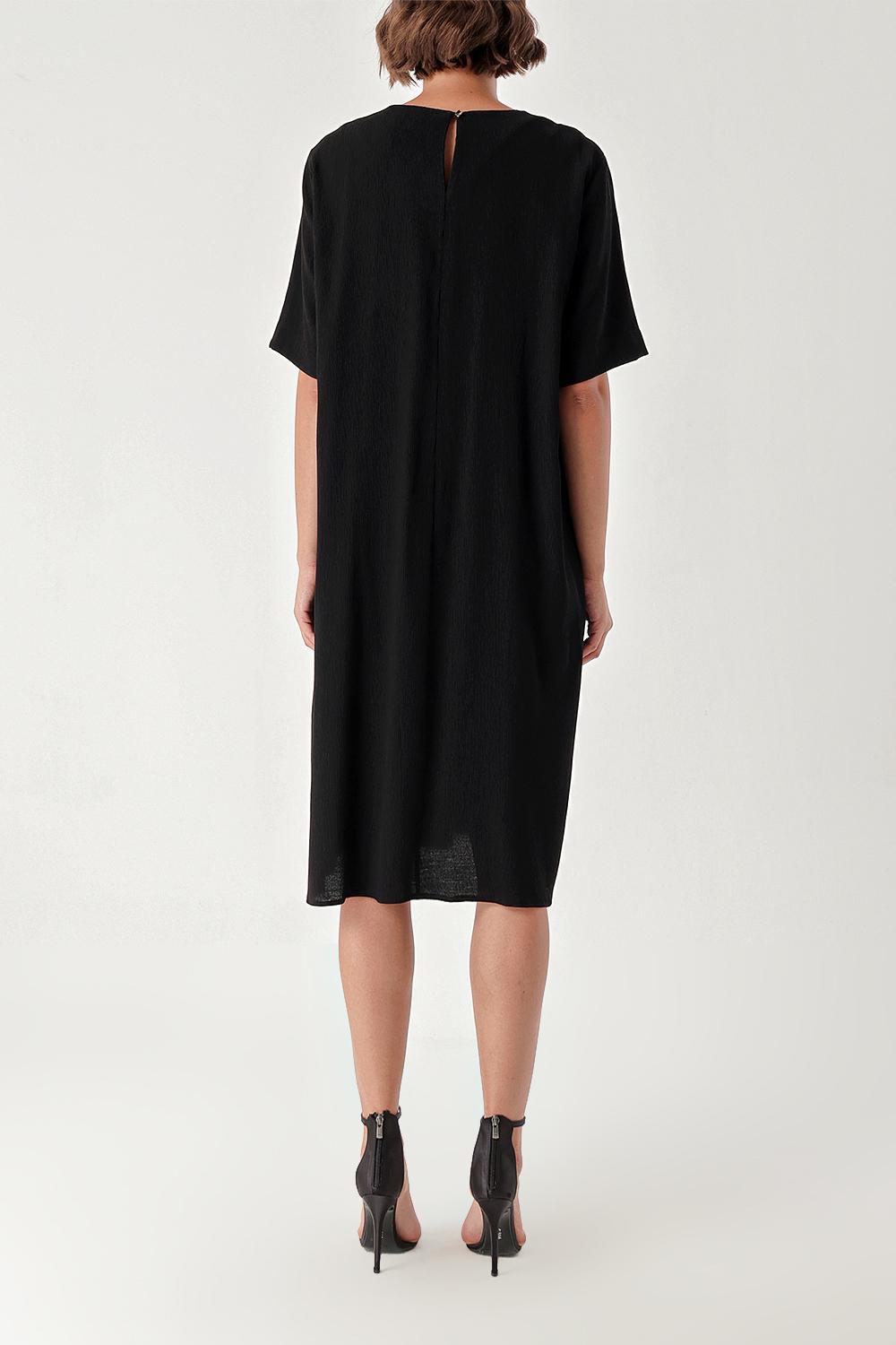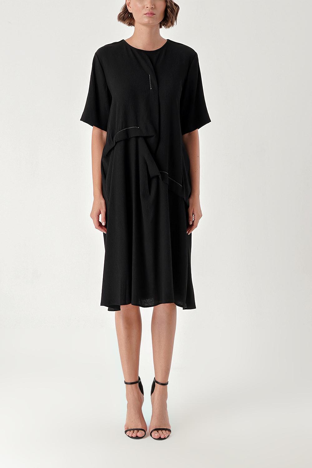 Siyah Kontrast dikiş detaylı bol kesim elbise 94277