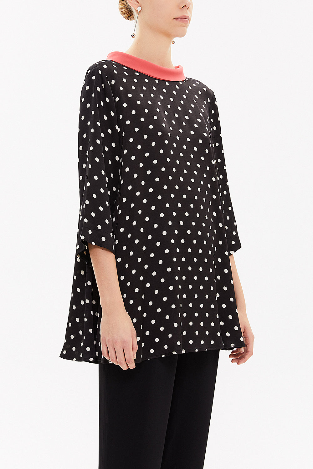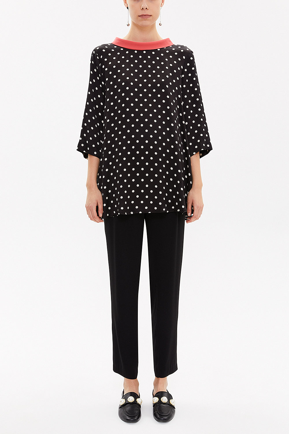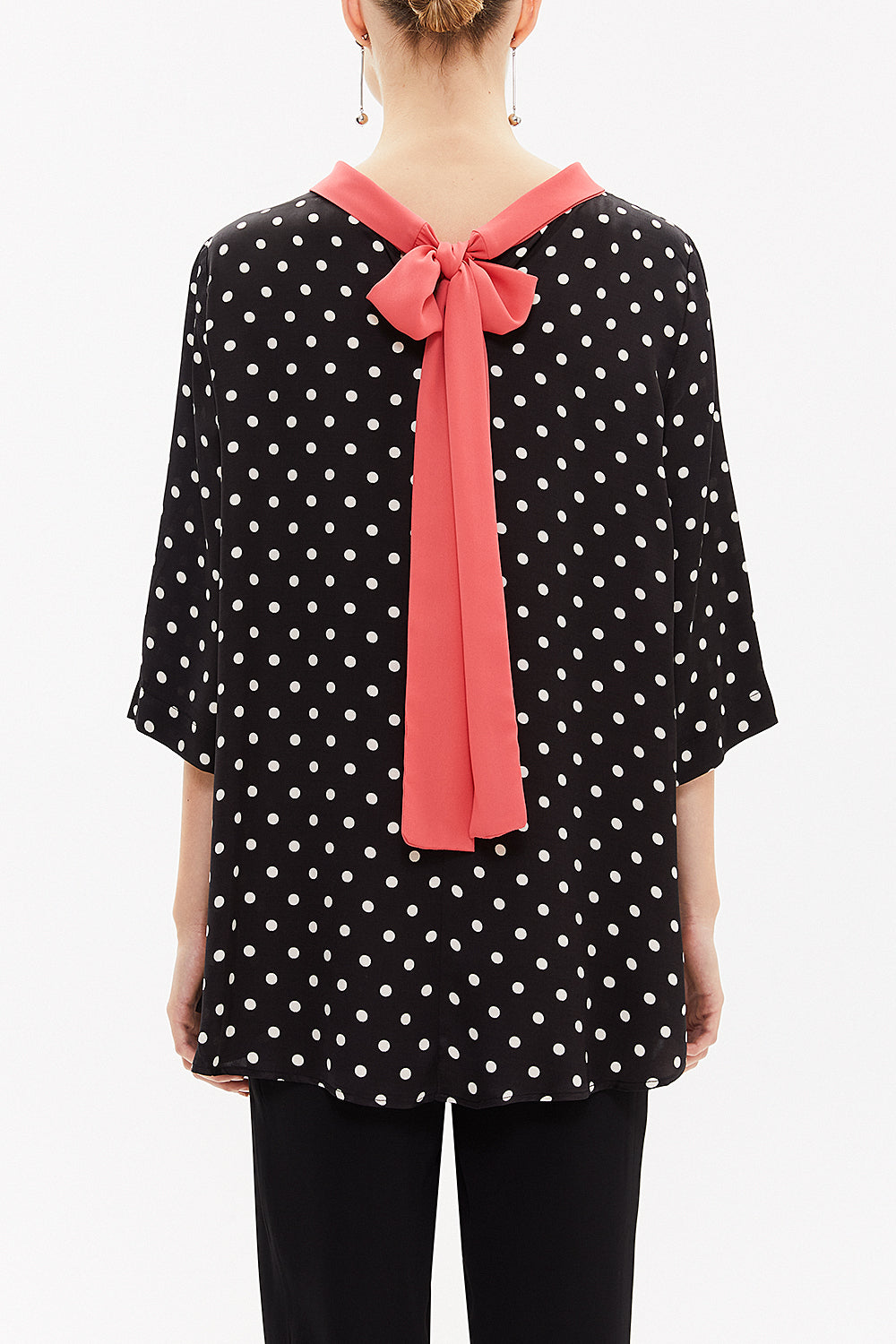 Siyah Kontrast kumaş detaylı bol kesim bluz 19762