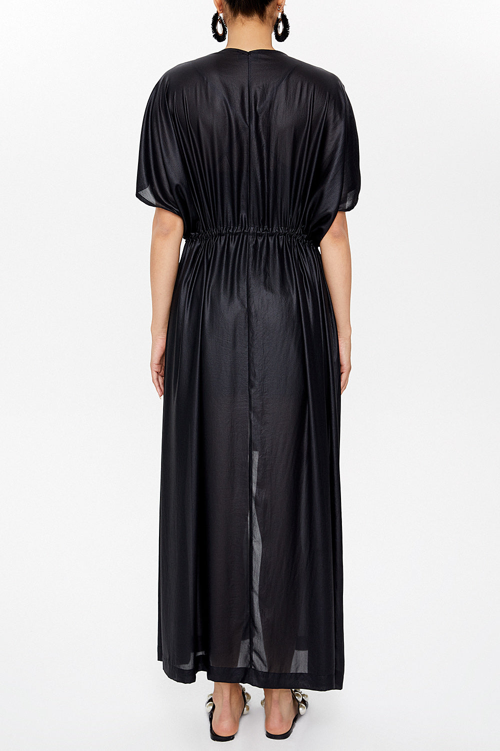 Siyah Kordon detaylı büzgülü uzun hırka 92922