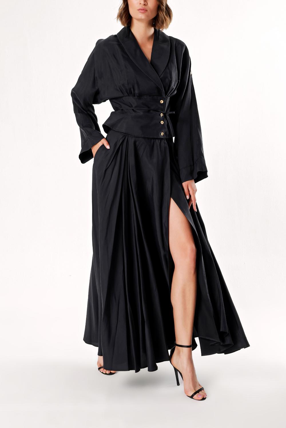 Siyah Korsiyaj detaylı bluz ve anvelop kapama etekli takım12313