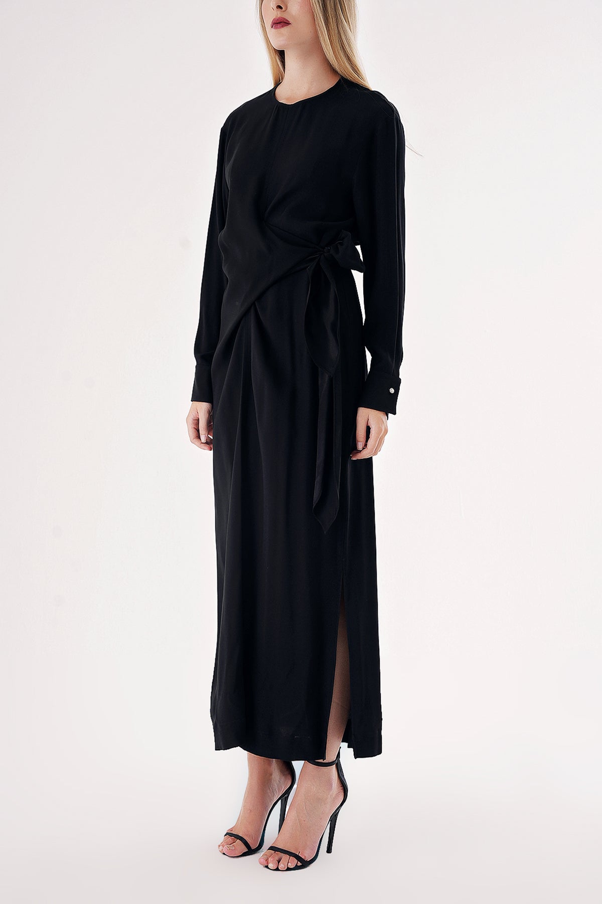 Siyah Kruvaze detaylı yırtmaçlı midi boy elbise 94448