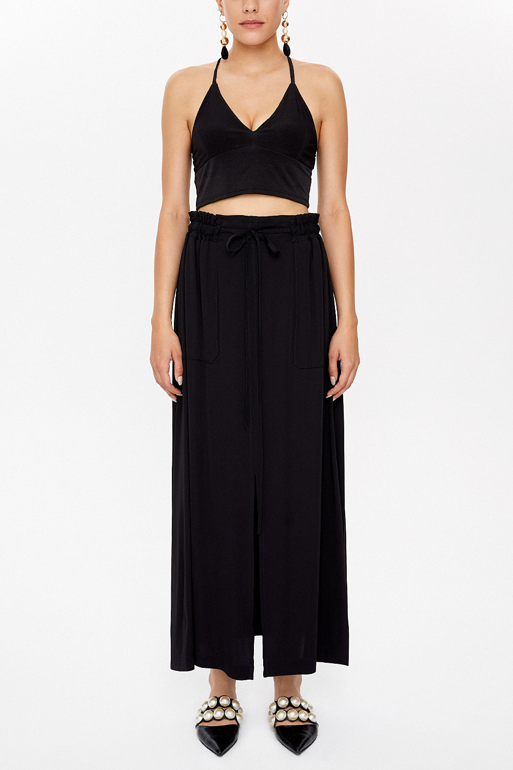 Siyah Lastik ve büzgü detaylı etek 81089