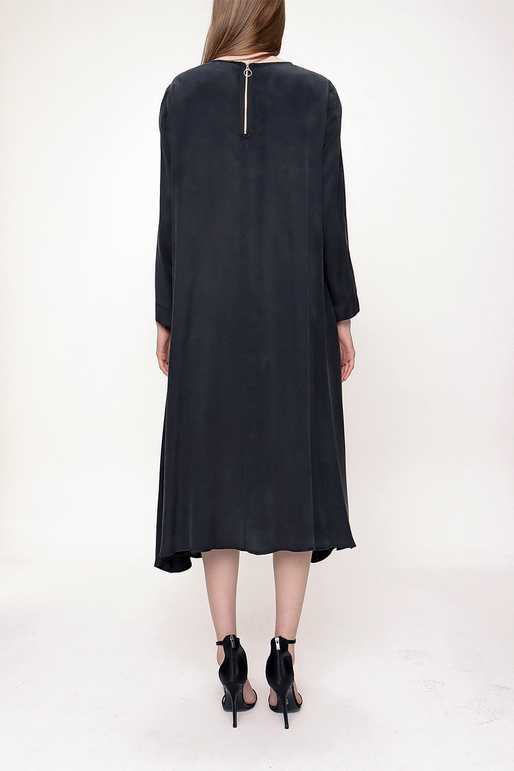 Siyah Mor Kontrast detaylı midi elbise 93721