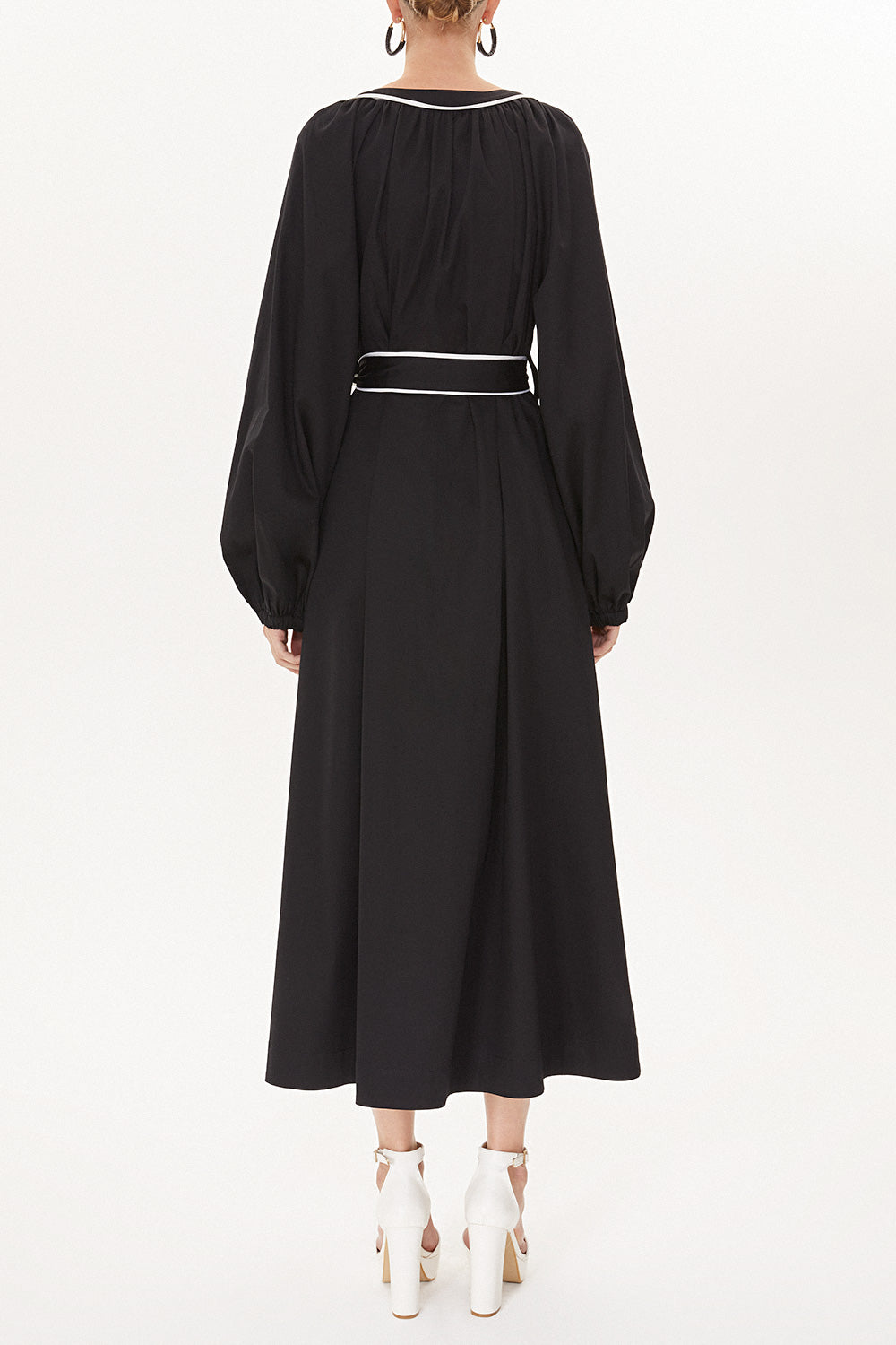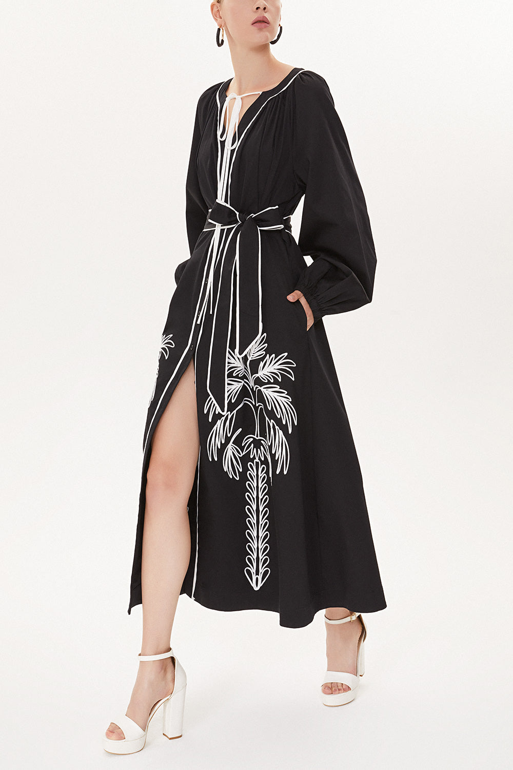Siyah Nakış detaylı uzun kollu elbise 93438